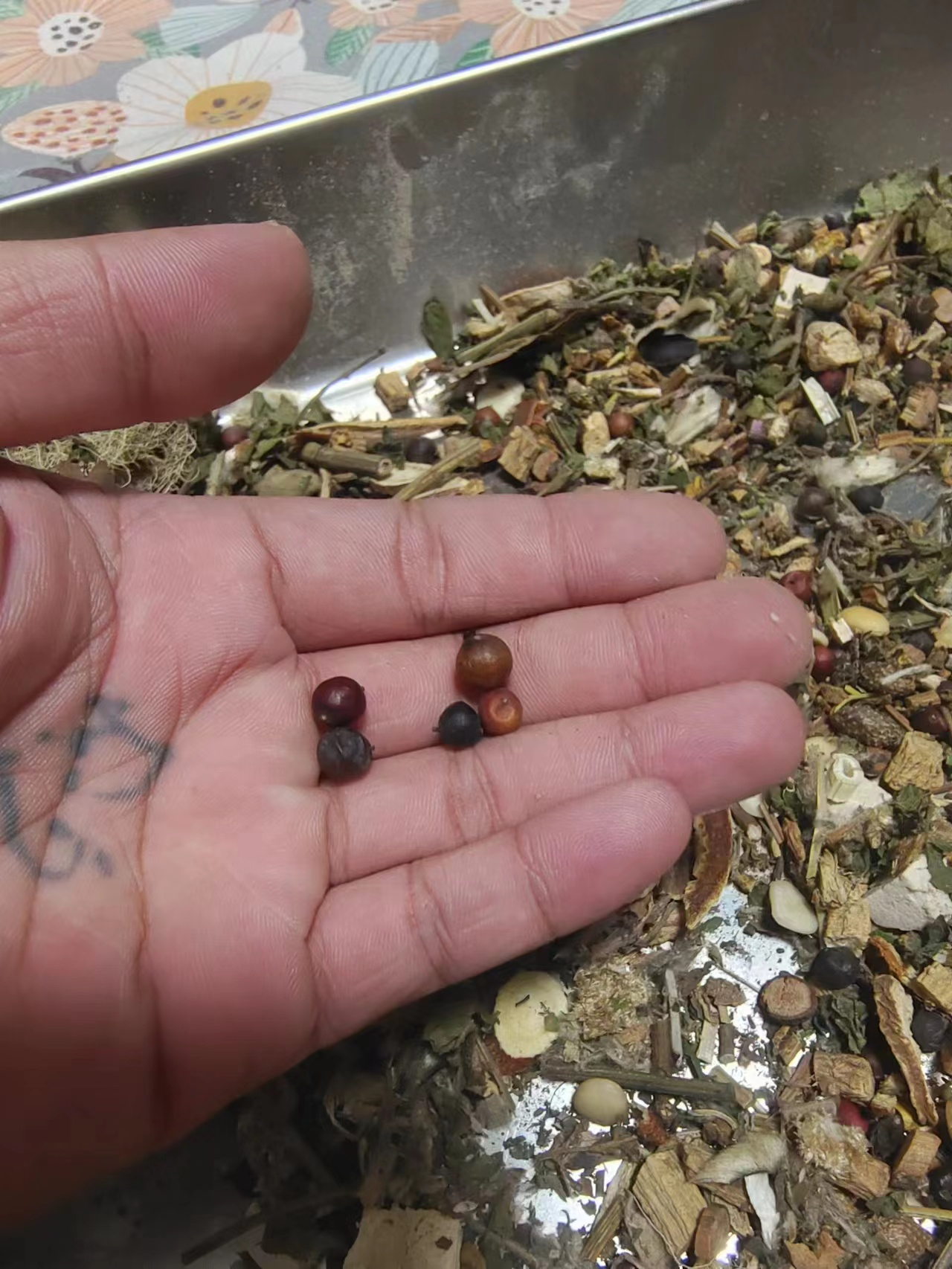 梦回杏林 说: 感觉好像有这几种药材: 一、带壳苡仁(或草珠子)??? 二、芦苇茎 三、竹茹 四、白术(或木香) 五、甘草 六、茯苓 七、党参(或银柴胡) 八、桃仁 九、陈皮 十、紫苏 十一、桑叶 十二、苍耳子(有肾毒) 点击展开... 老师你好,那个毛毛装的好像不是竹茹,有点像木香那个我也不知道是什么 还有老师说草柱子那个,我看着有点像灯笼果,也不太确定,但应该不是草柱子
