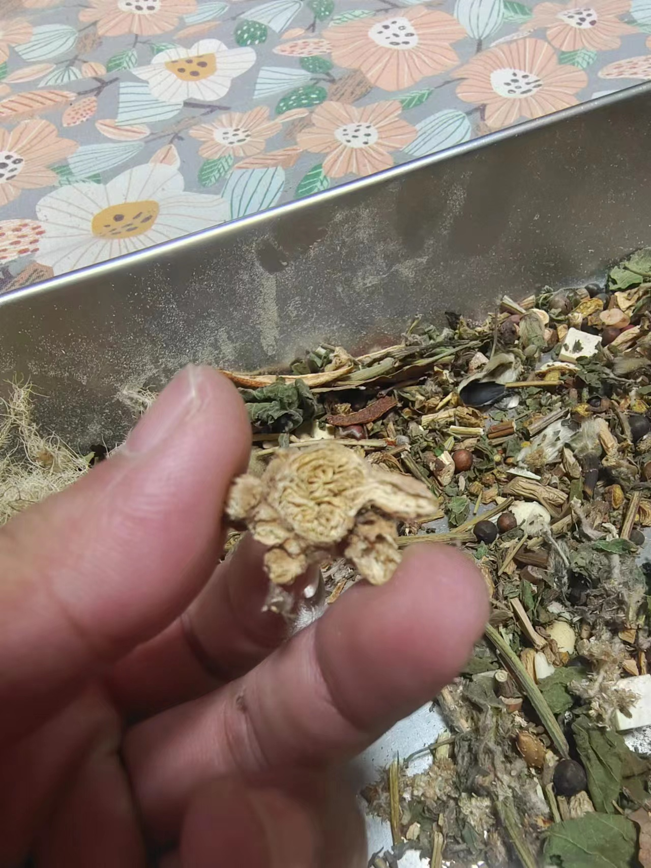 紫菀冬花 惊鸿一瞥 正式会员 注册 2023/08/26 帖子 52 获得点赞 14 声望 8 年龄 26 所在地 山东 2023/09/07 #6 梦回杏林 说: 感觉好像有这几种药材: 一、带壳苡仁(或草珠子)??? 二、芦苇茎 三、竹茹 四、白术(或木香) 五、甘草 六、茯苓 七、党参(或银柴胡) 八、桃仁 九、陈皮 十、紫苏 十一、桑叶 十二、苍耳子(有肾毒) 点击展开... 老师你好,那个毛毛装的好像不是竹茹,有点像木香那个我也不知道是什么 还有老师说草柱子那个,我看着有点像灯笼果,也不太确定,但应该不是草柱子