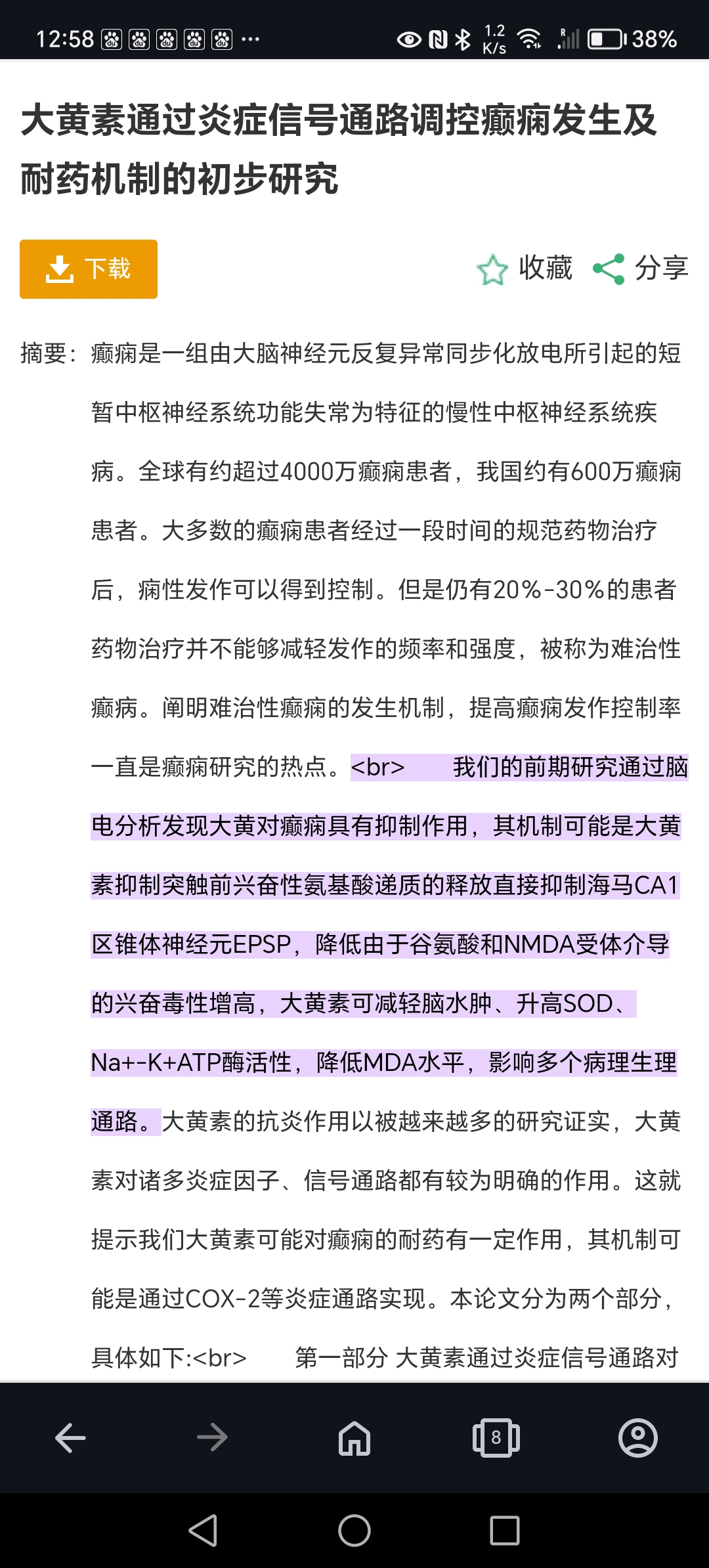 中西医理论不同,但有时候观察到的现象是相同的. 这种化学理论为根基的医学,太多的变量,任何一个不一样,结论就大不相同.靠一个个一次次实验来探索,只能祈祷碰运气.提纯的大黄素,老鼠实验,且体内环境和体外不同.西医分析中药想要得出正确的经验,也是妄想.毕竟经络他们都无法探测到. 大黄不是那么工作,情况也并不适合大黄.我没有找到原始的文章,因为当时我也有个患者有癫痫服西药控制,文章中说那个医生对面是精神病院,那里的患者经常到他那里看病,其中有用大黄泻下后病情好转明显,所以当时我就让我的患者常服一些大黄保持大便通畅。