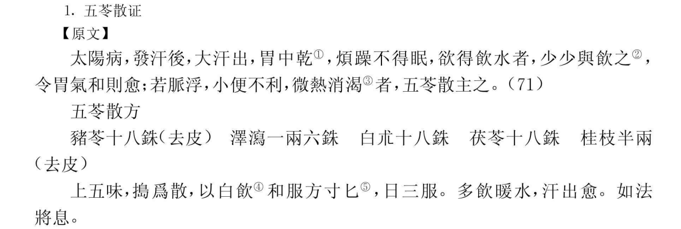 泽泻一两一分 猪苓三分(去皮) 茯苓三分 白术三分 桂枝二分(去皮)