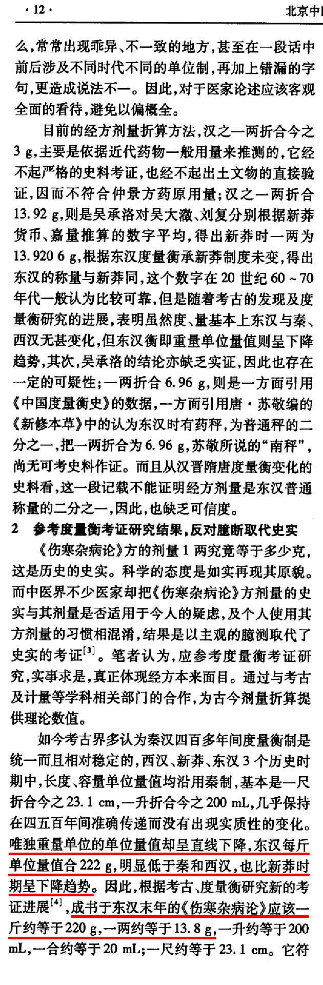 一桥飞架南北 说: 嗯,是我大意了,除以10确实有误。按宋以后1两等于1钱(3克)的通行做法,在理论推算值上除以5应该是比较合适的。 点击展开... 为什么宋以后对晋以前的1两按1钱来处理?这个问题伤寒大家郝万山说得比较清楚,也比较符合当今临床实际。