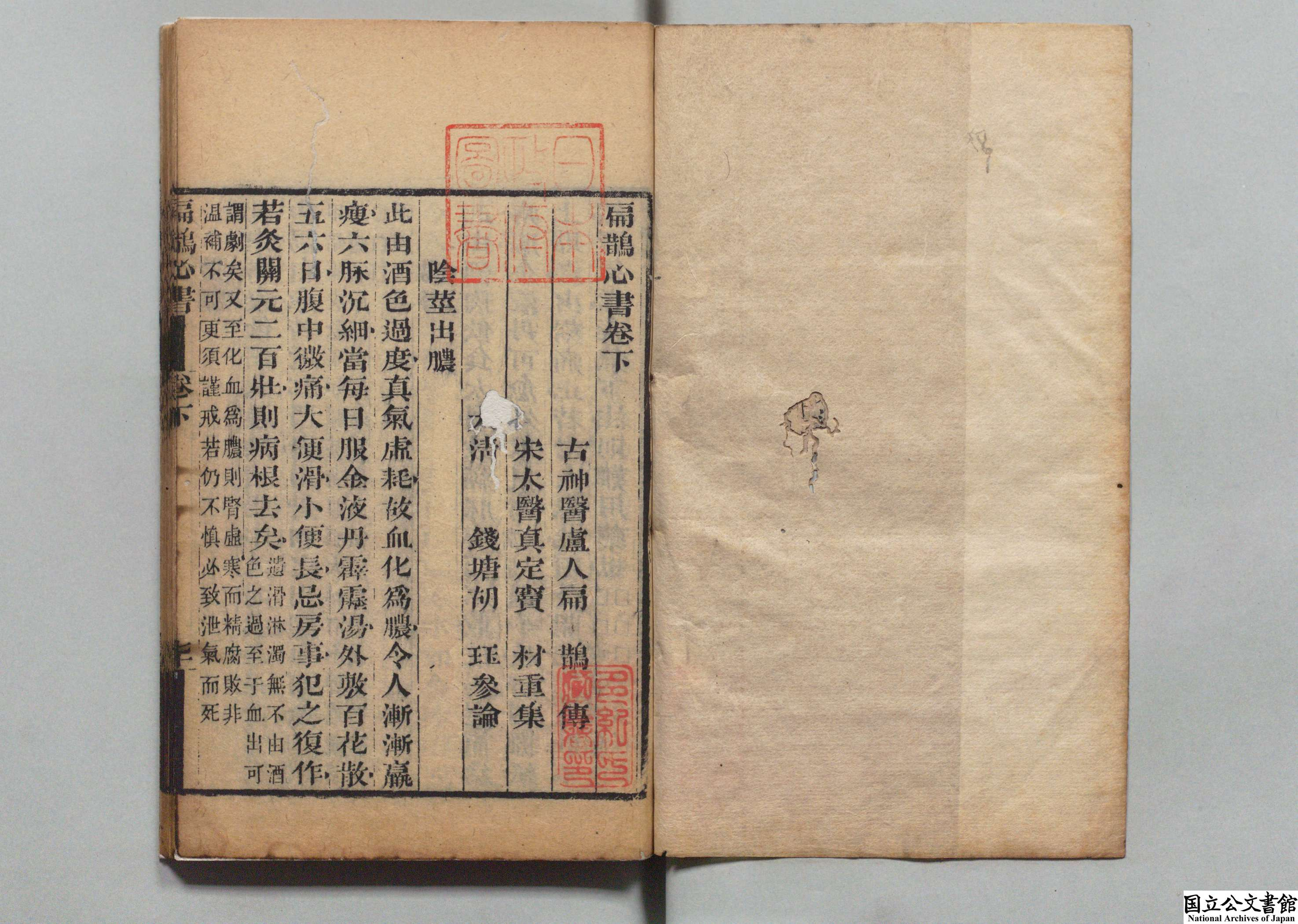 扁鹊心书 全2卷 宋·窦材编辑 清·胡珏参论 清乾隆30年 (1765年) 刻本 江户医学馆旧藏 日本内阁文库数字化
