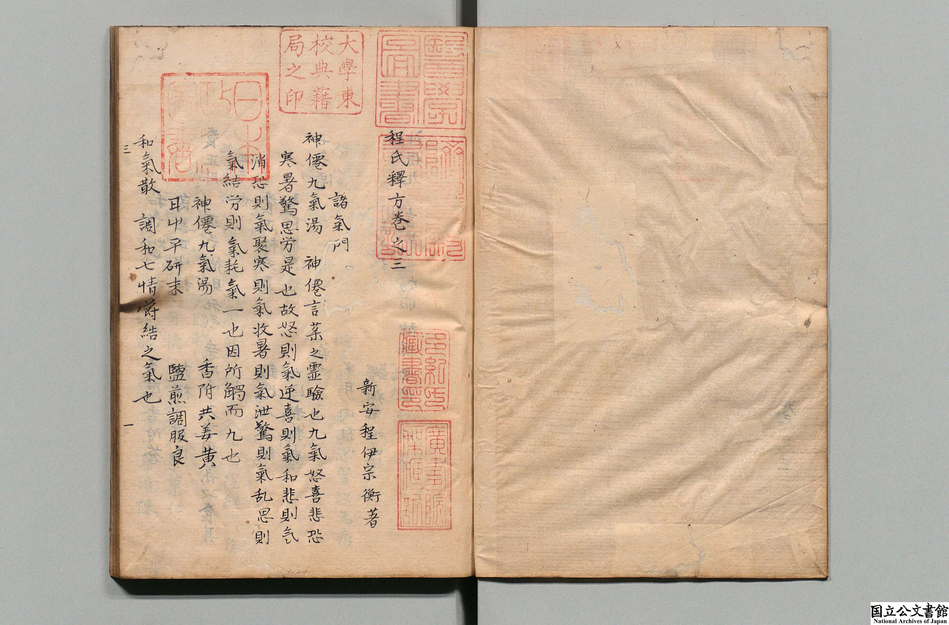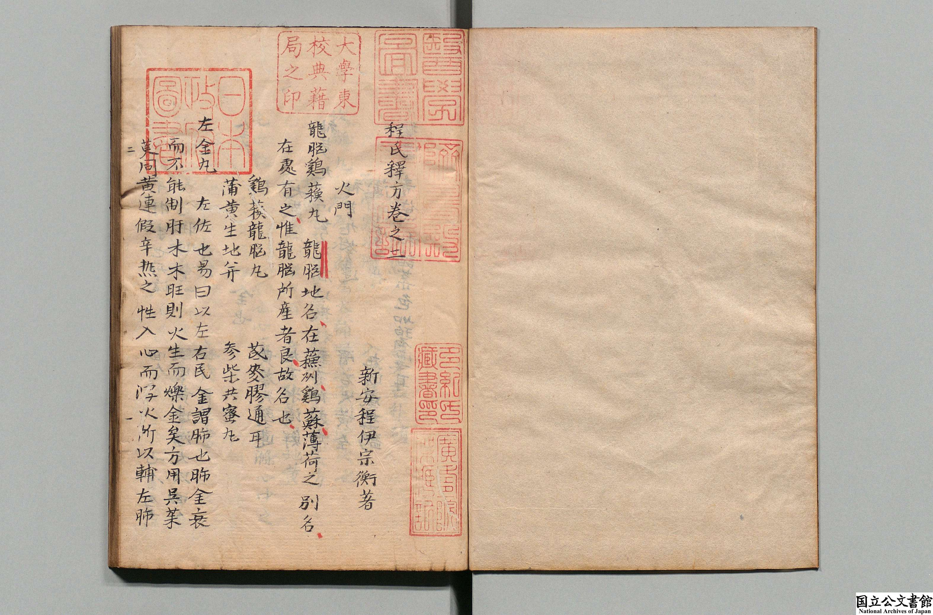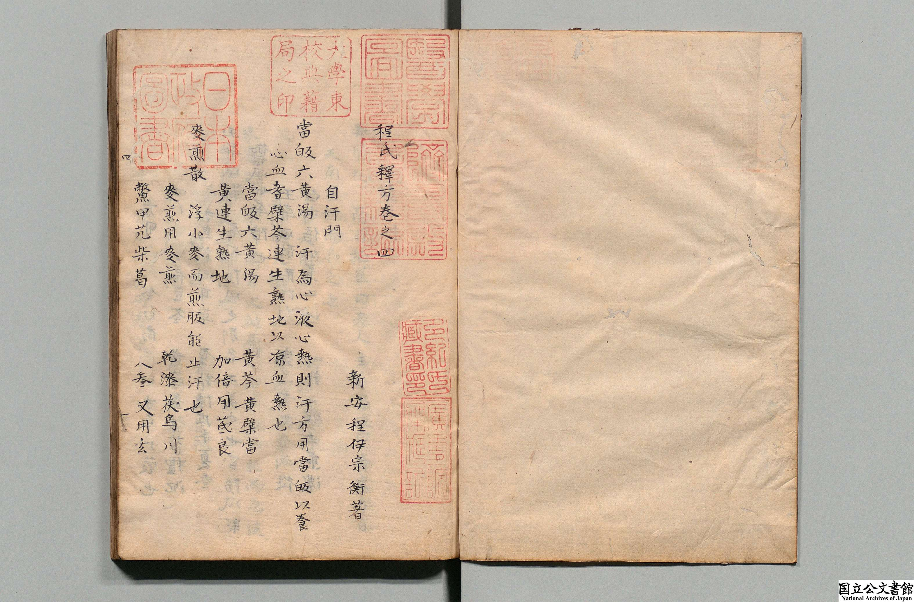 程氏释方 全4卷 明·程伊编撰 日本天明04年 (1784年) 抄本 江户医学馆旧藏 多纪元简手跋本 日本内阁文库数字化