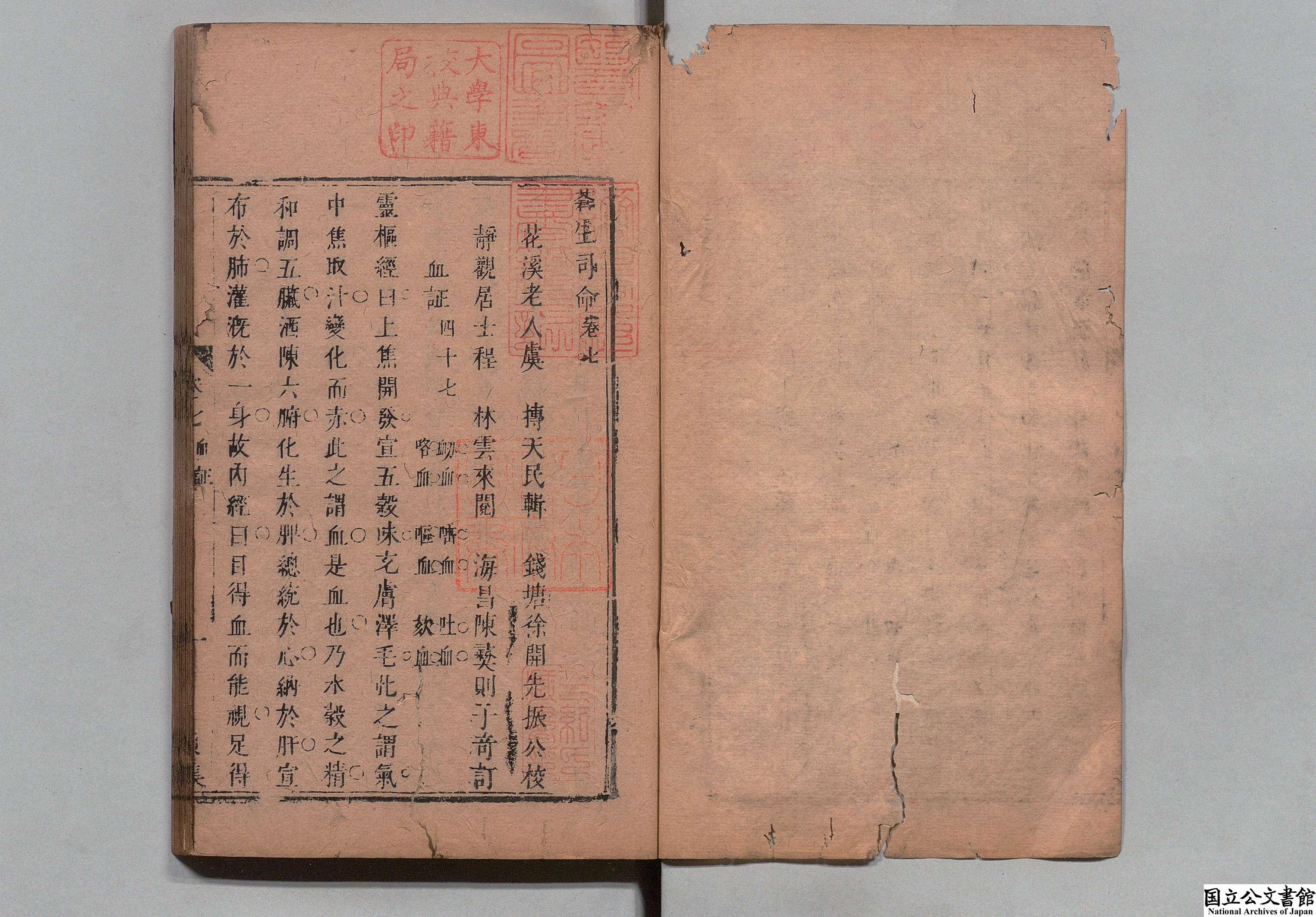 苍生司命 全8卷 明·虞抟编撰 明·徐开先校订 清乾隆01年 (1736年) 怀德堂刻本 江户医学馆旧藏 日本内阁文库数字化