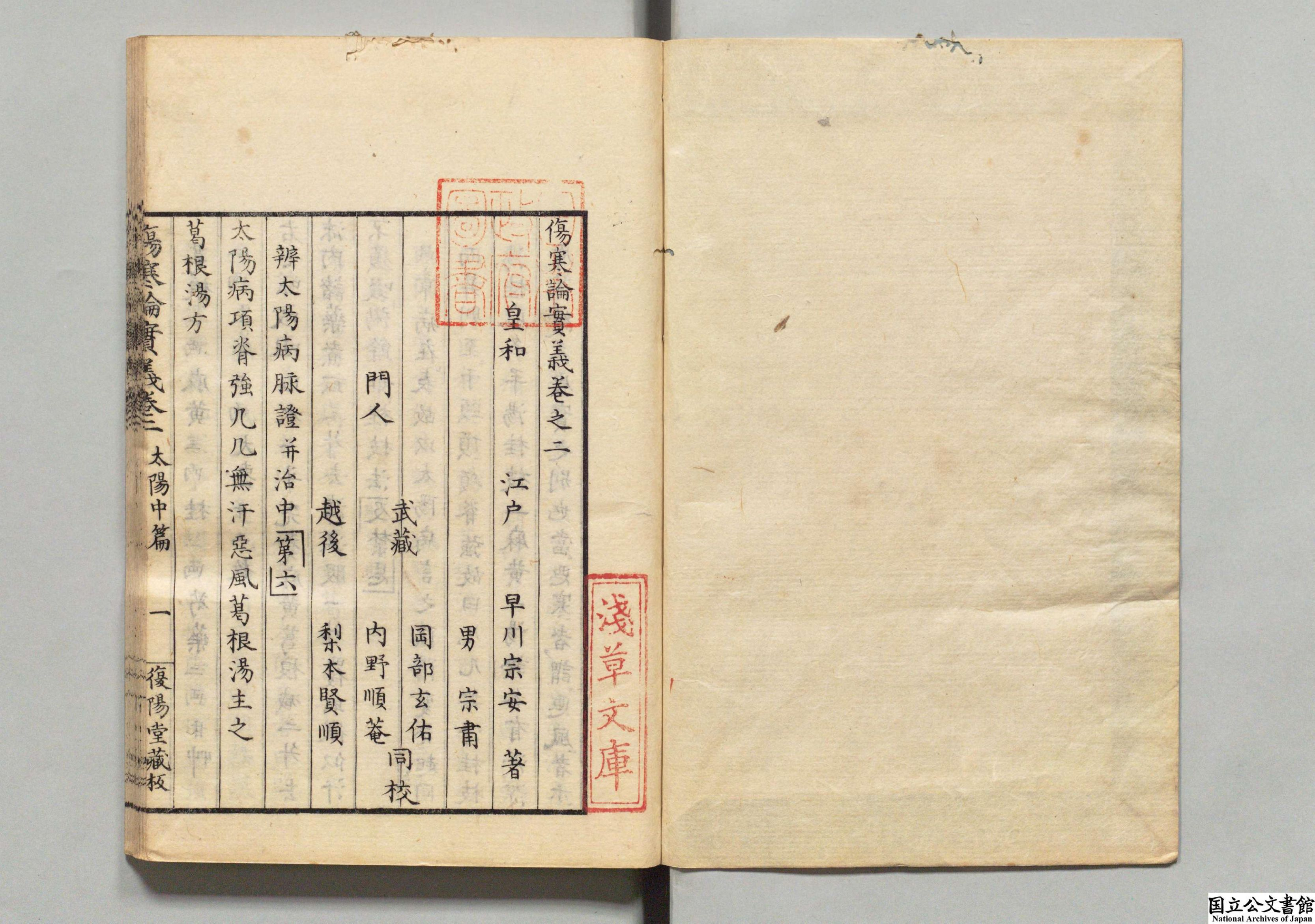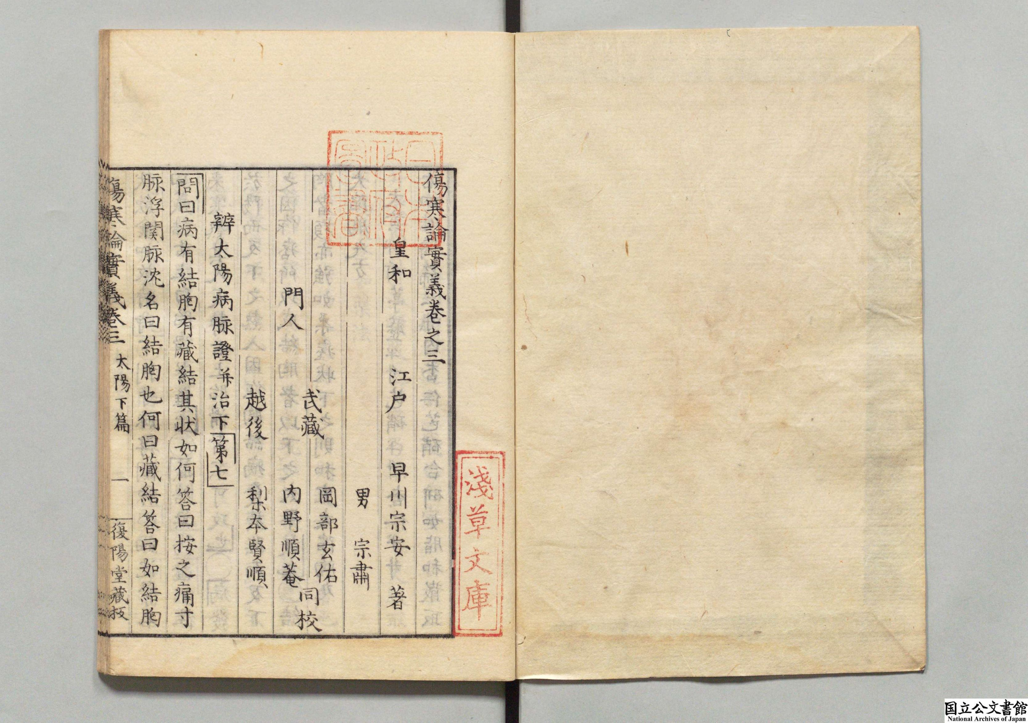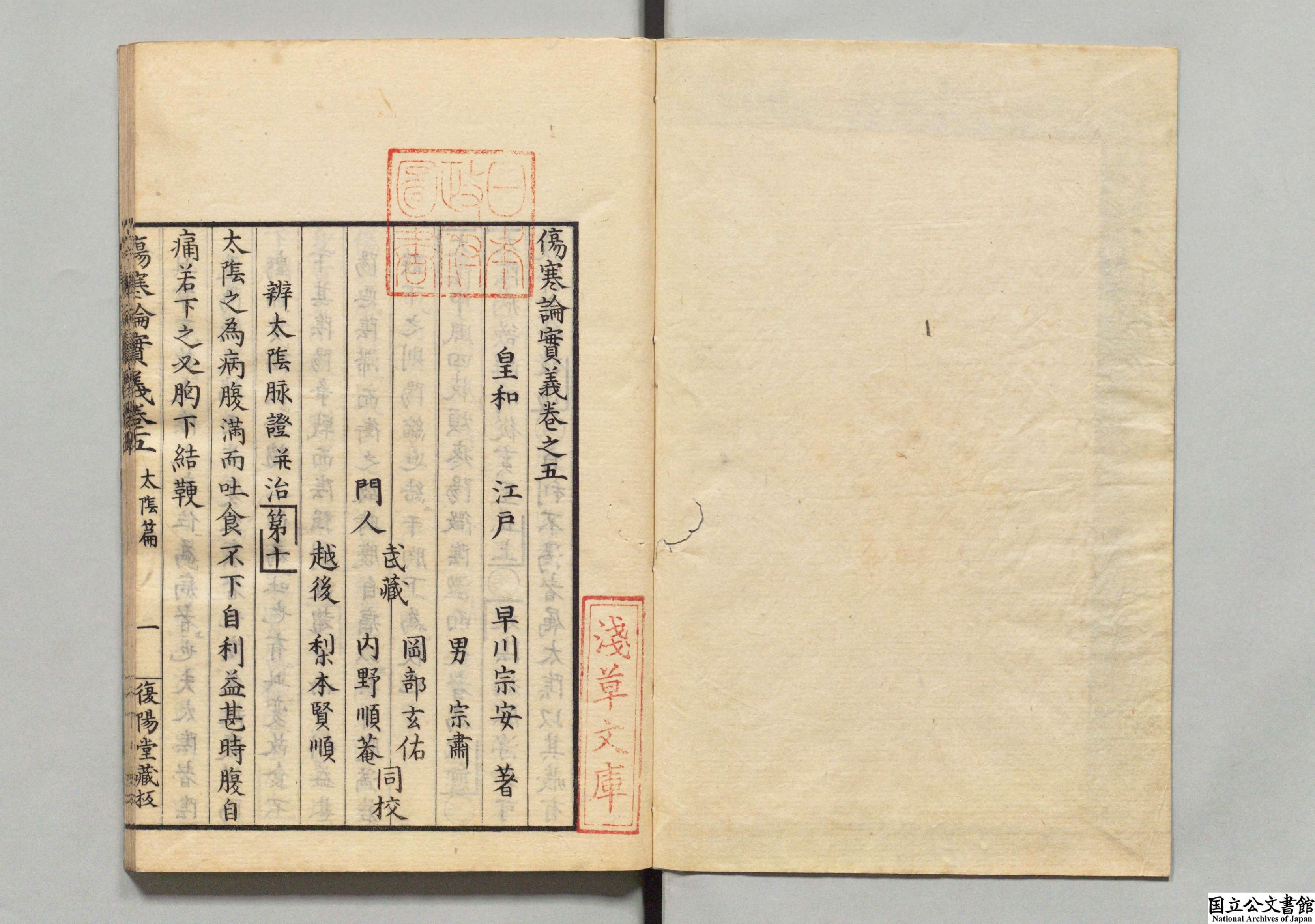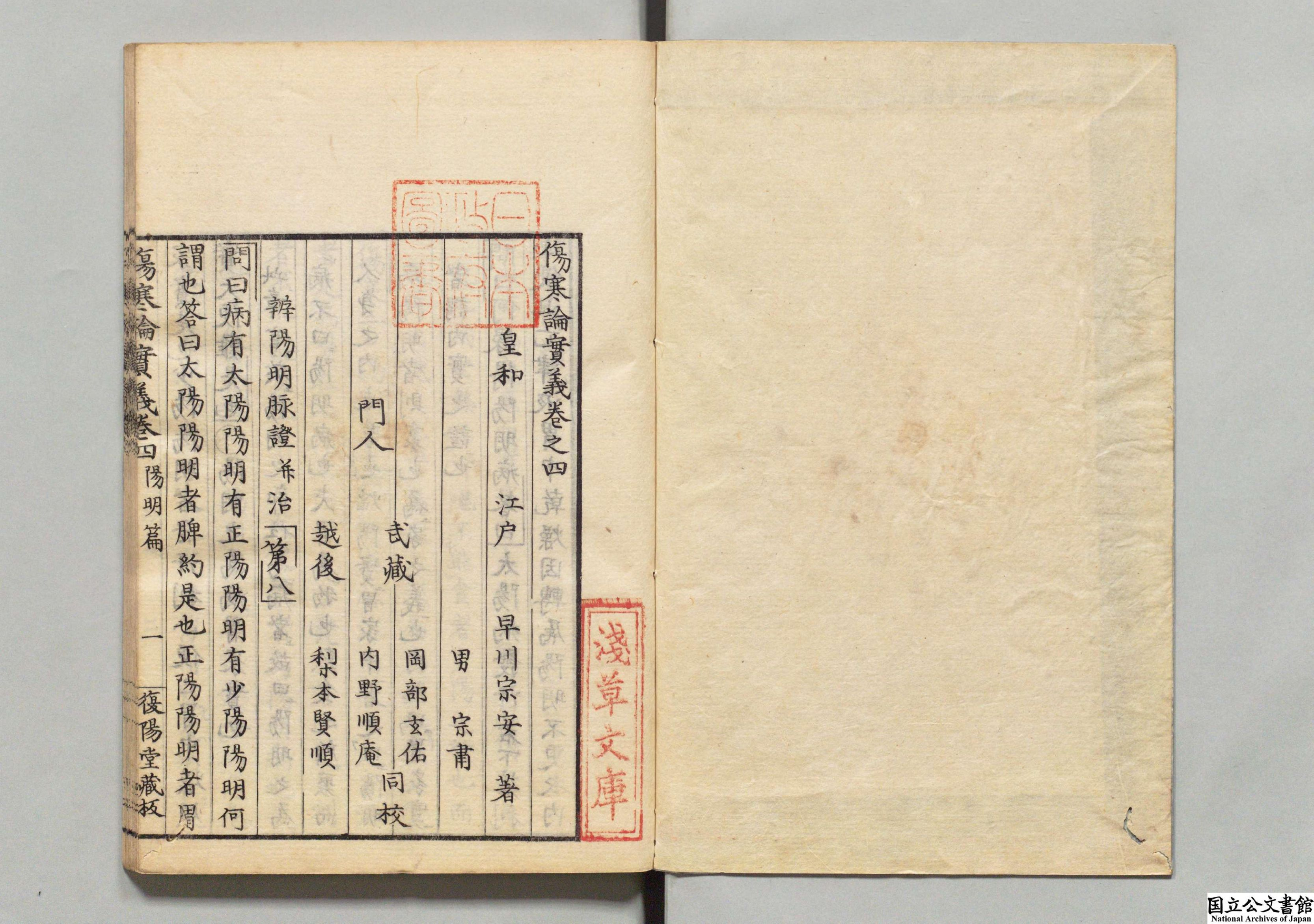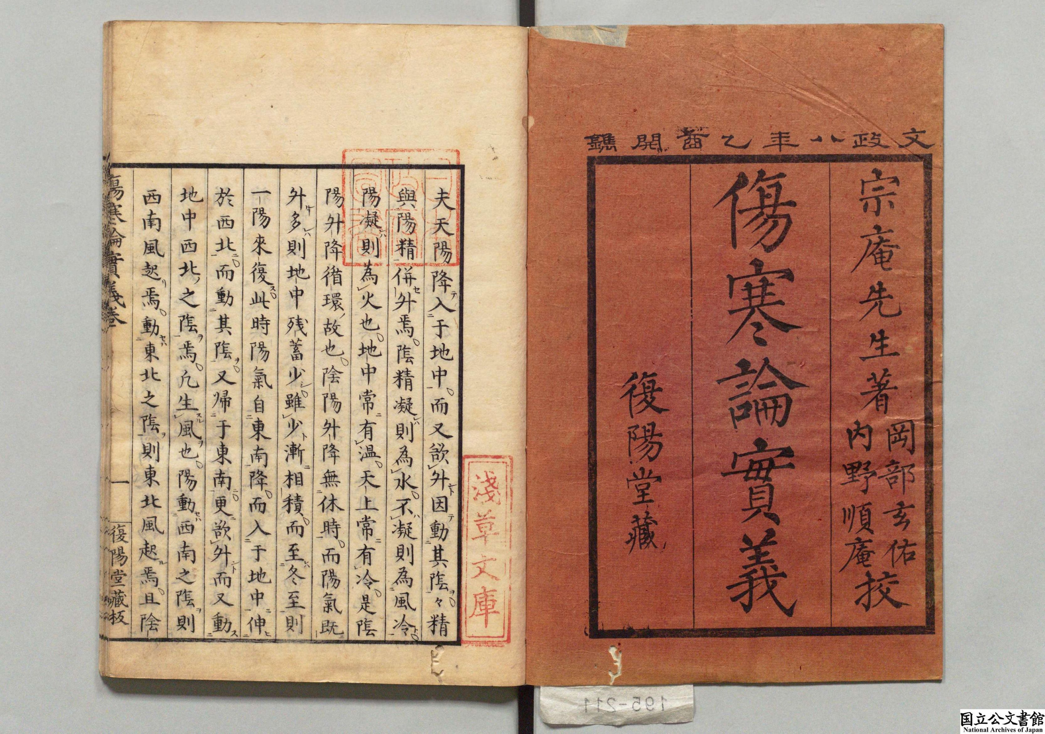 伤寒论实义 全5卷 日本·早川宗安编撰 日本文政08年复阳堂刻本 昌平坂学问所旧藏 日本内阁文库数字化