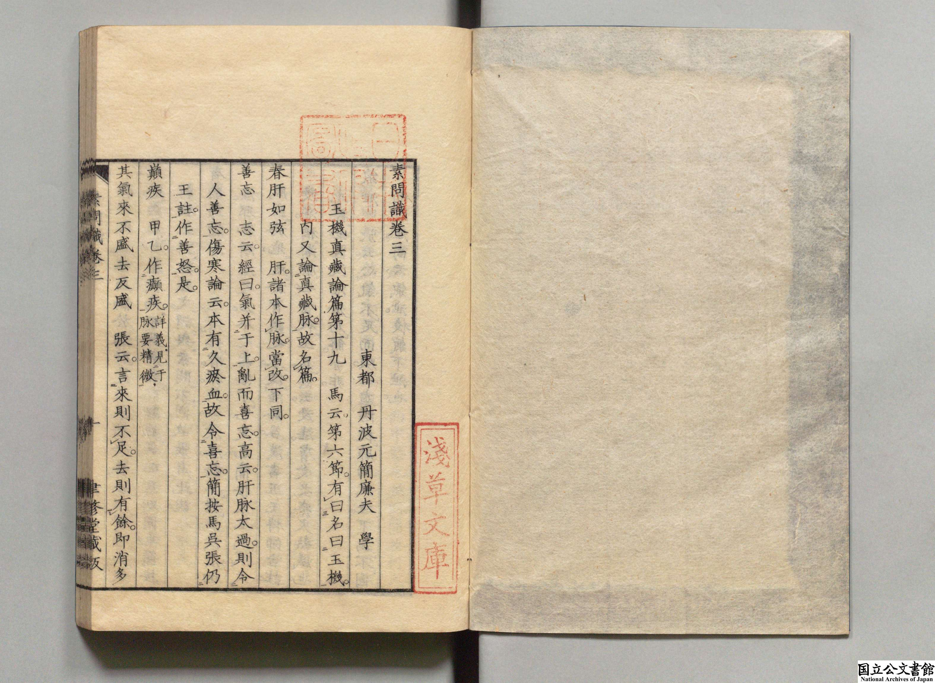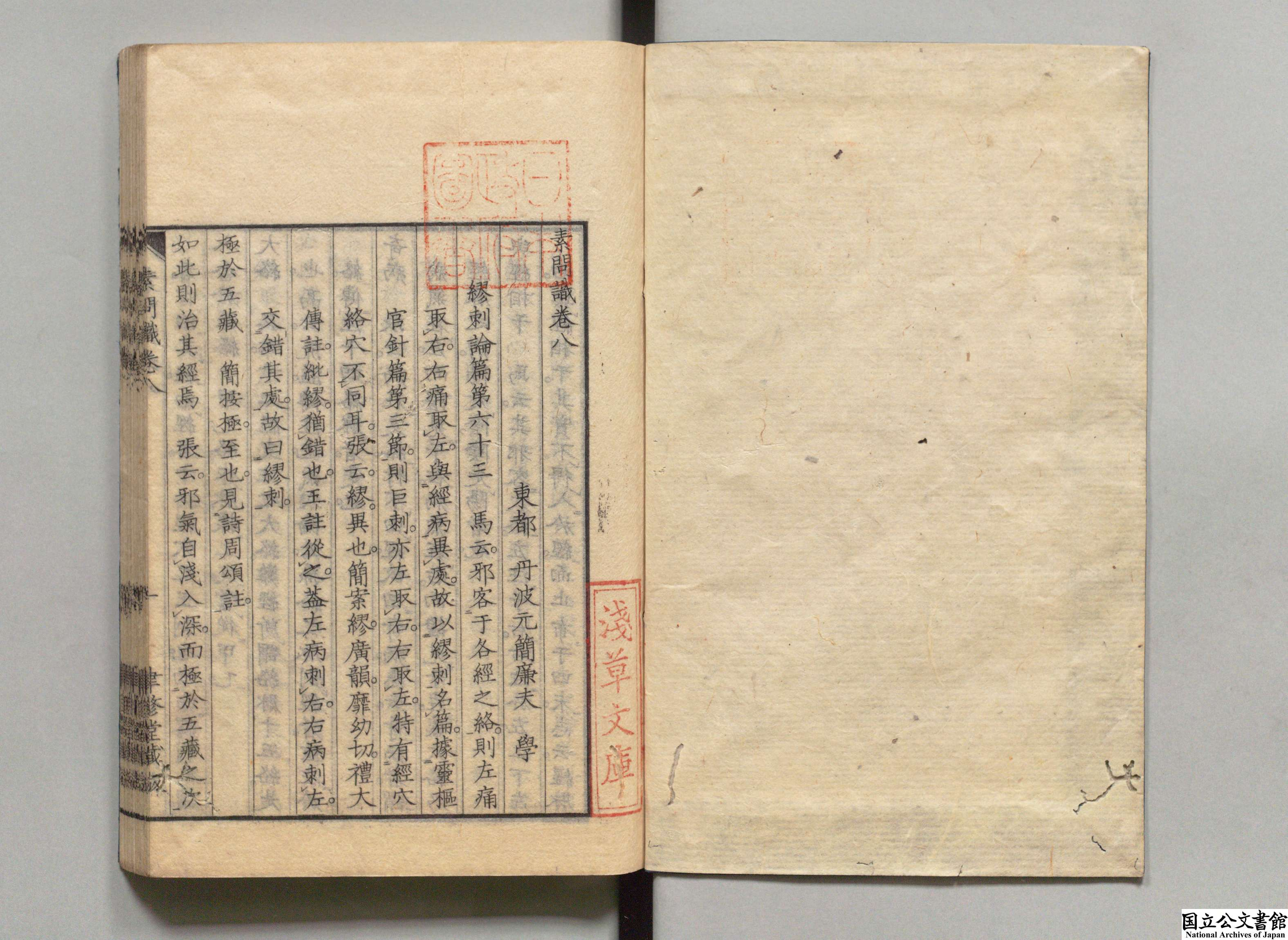 素问识 全8卷 日本·多纪元简编撰 日本天保08年 (1837年) 聿修堂初刻本 昌平坂学问所旧藏 日本内阁文库数字化