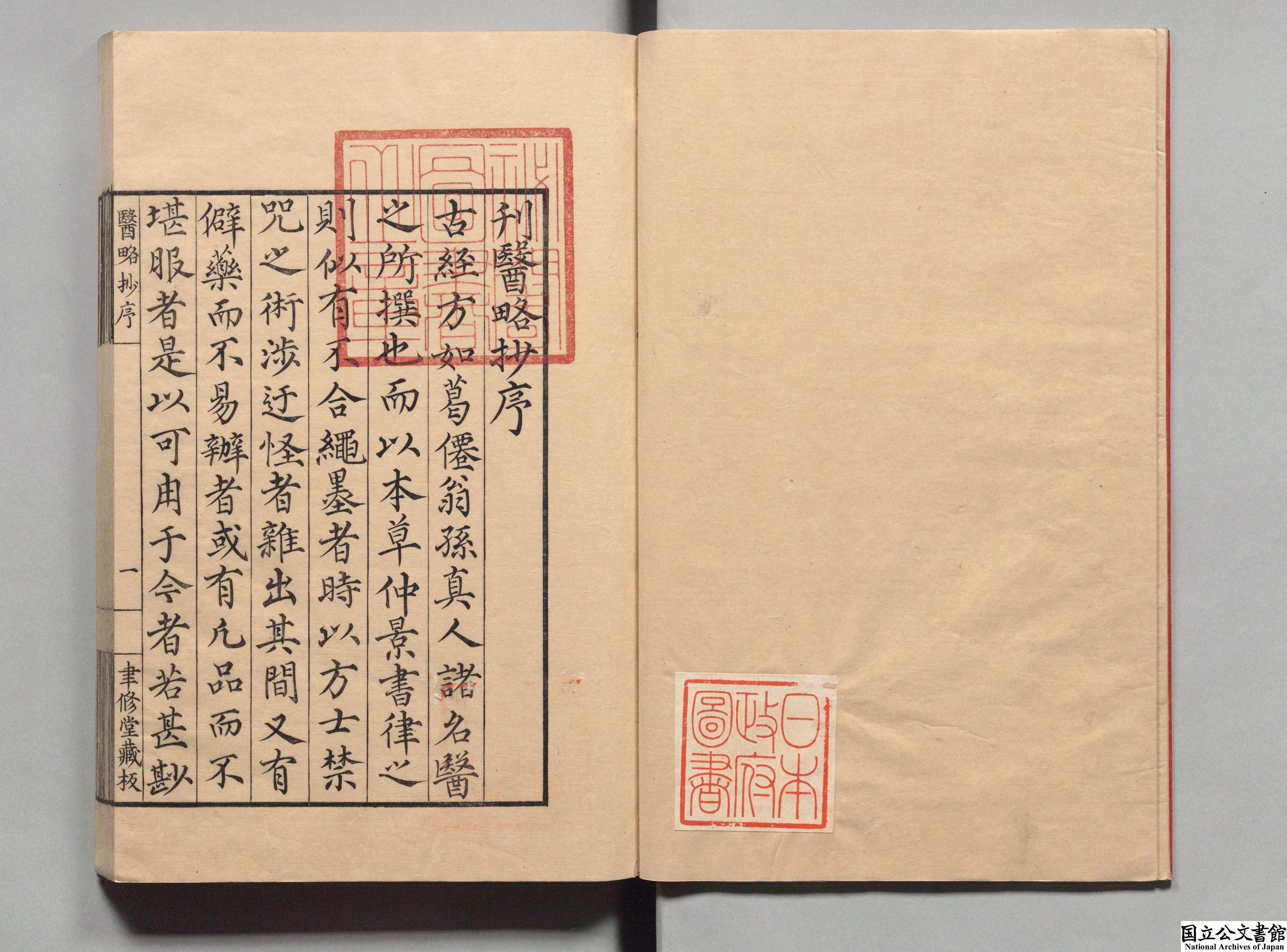 医略抄 全1卷 日本·丹波雅忠编撰 多纪元简校订 日本宽政08年 (1796年) 聿修堂刻本 红叶山文库旧藏 日本内阁文库数字化