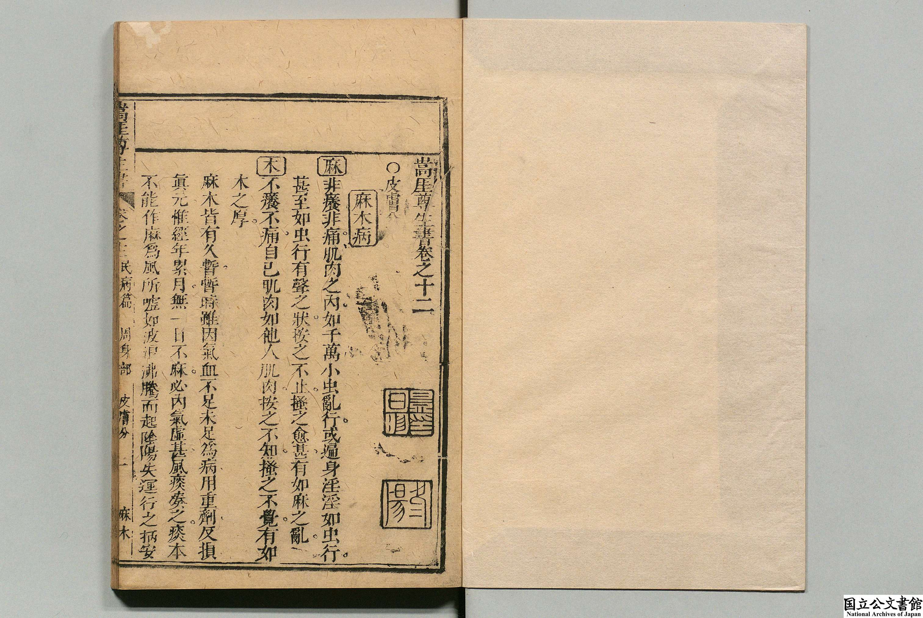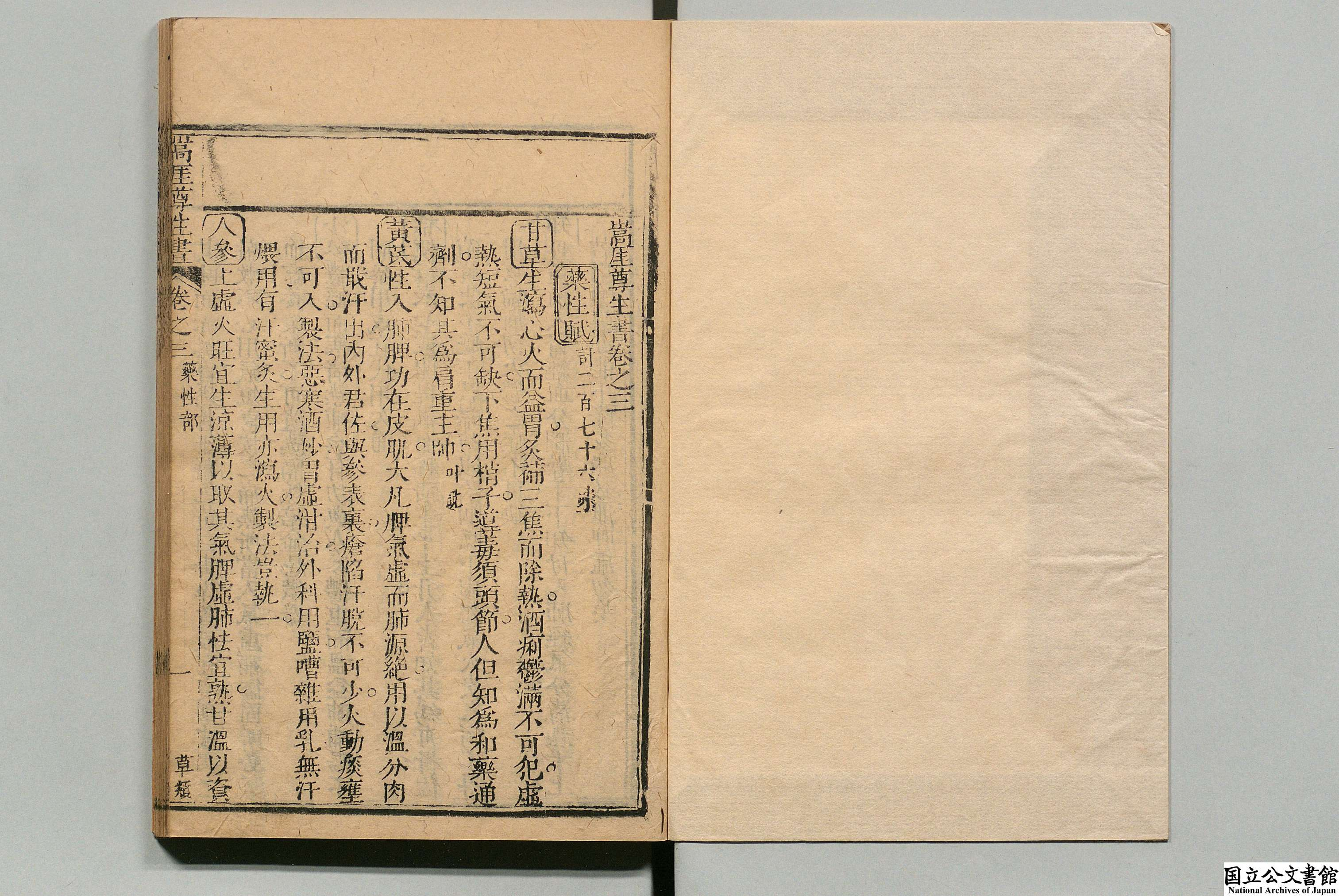 嵩崖尊生书 全15卷 清·景日昣编撰 清康熙35年 (1696年) 初刻本 丰后佐伯藩主毛利高利献上本 日本内阁文库数字化