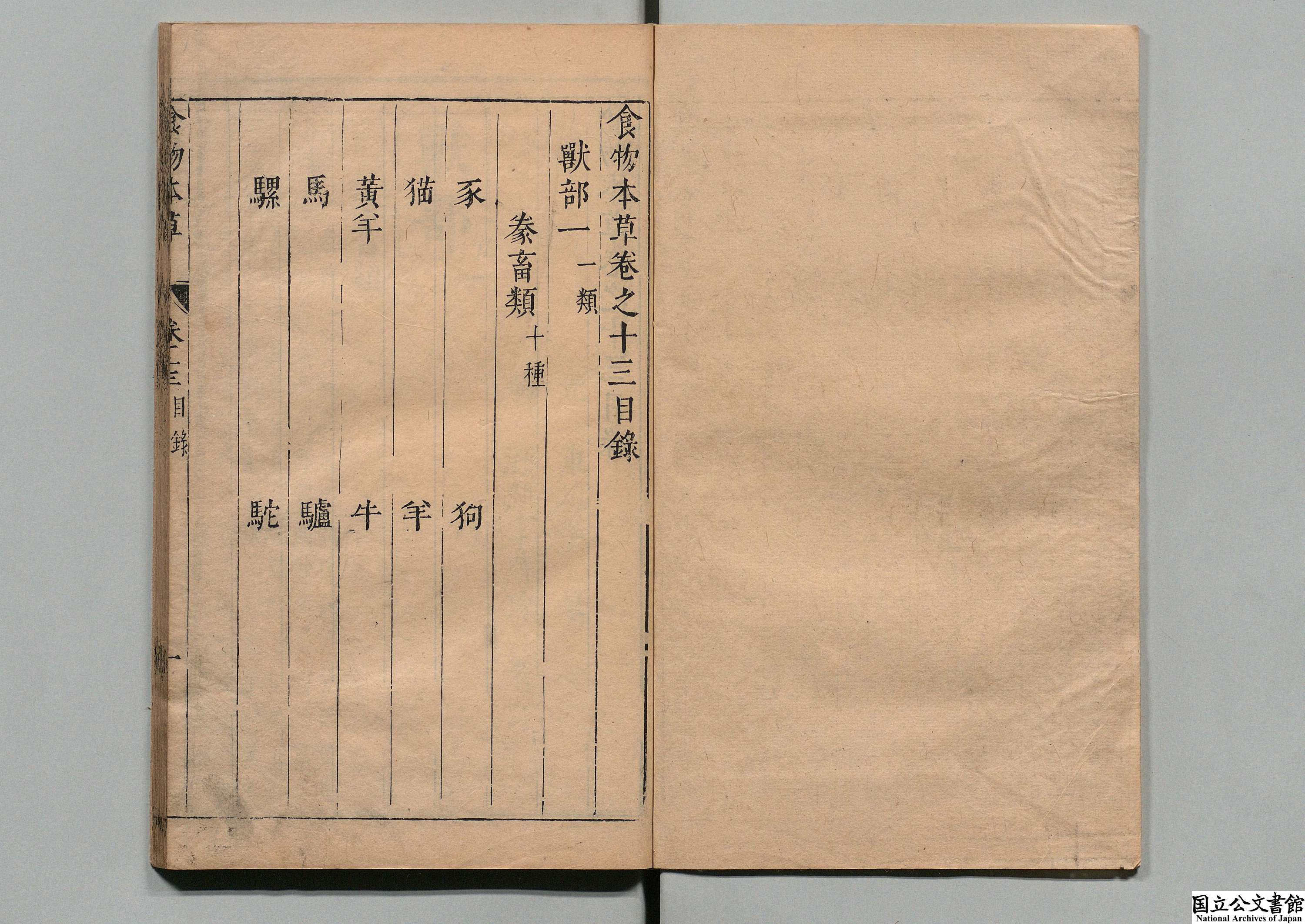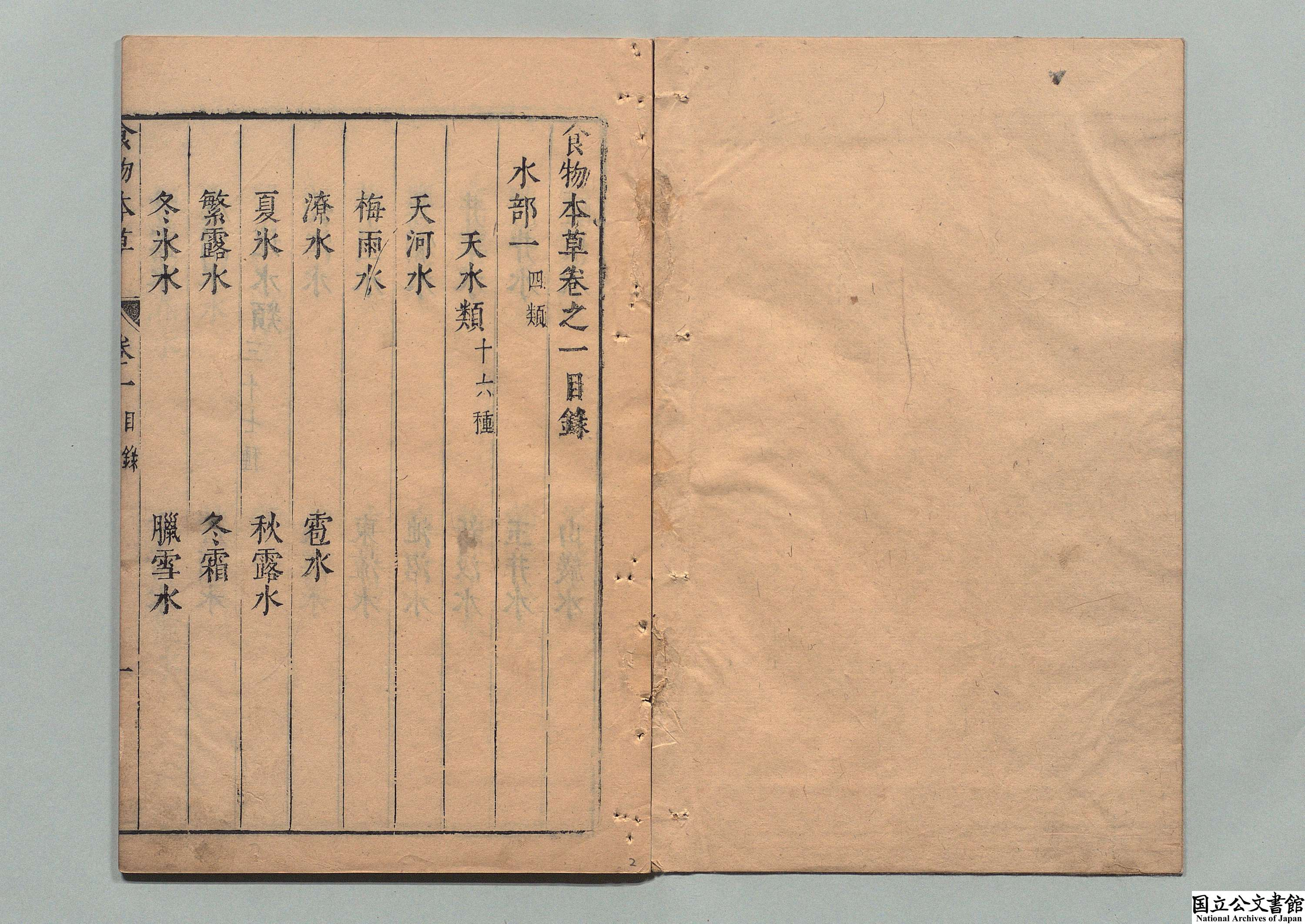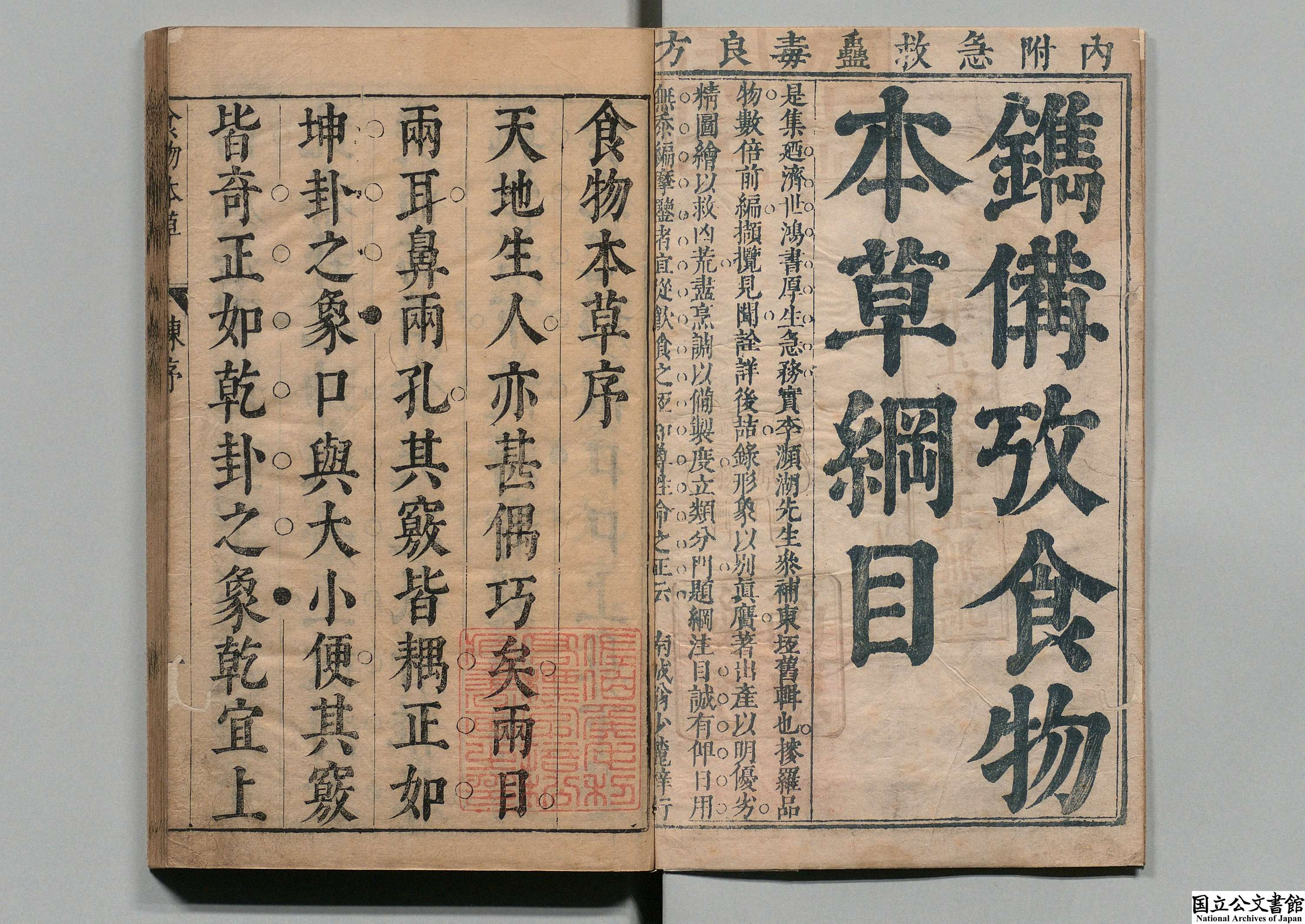 食物本草 全22卷 金·李杲撰 明·李时珍校订 明崇祯11年 (1638年) 刻本 丰后佐伯藩主毛利高标献上本 日本内阁文库数字化