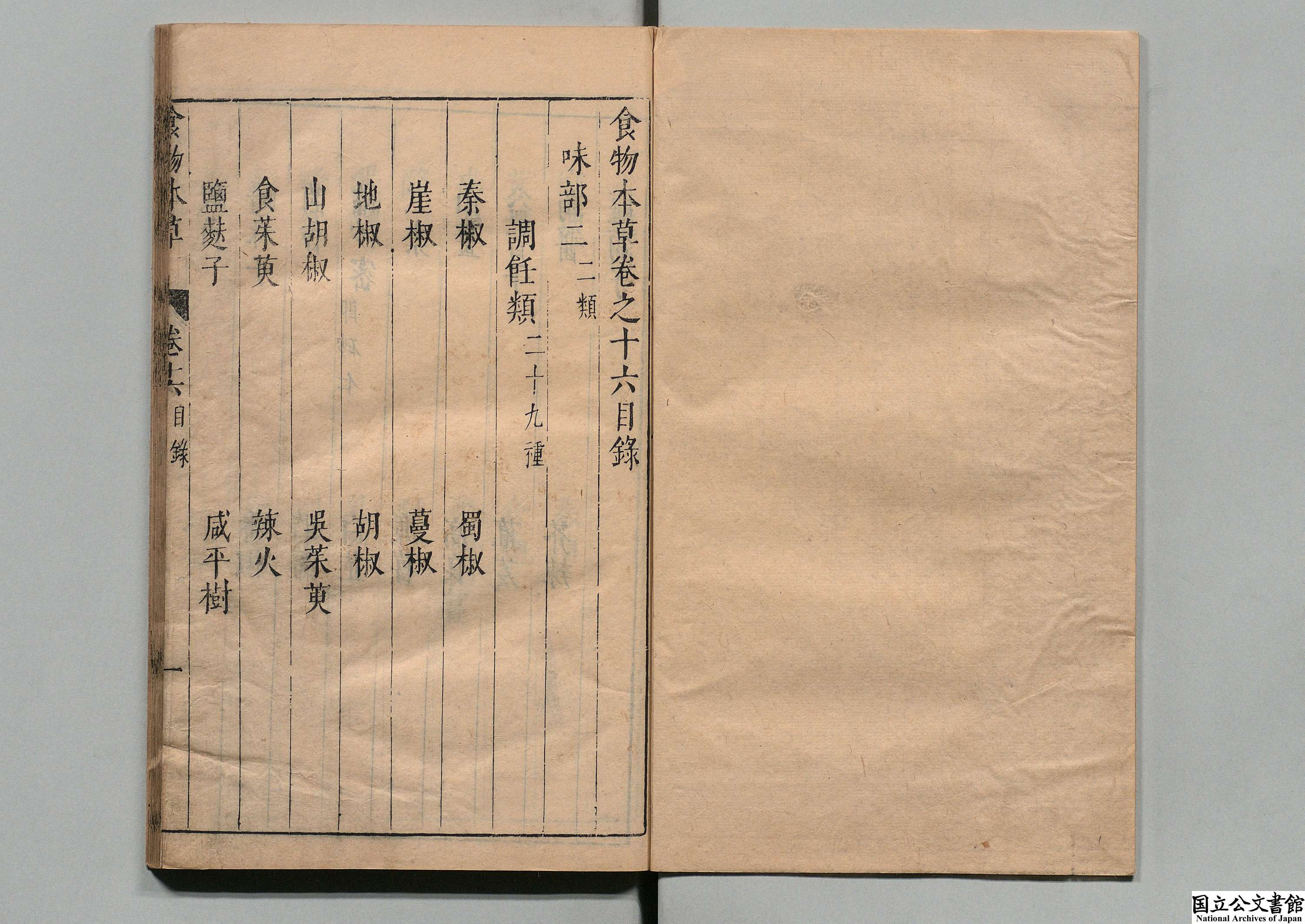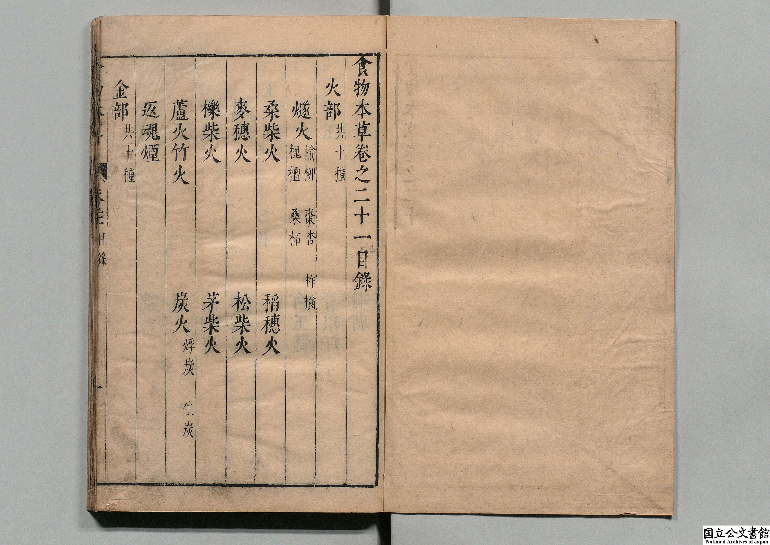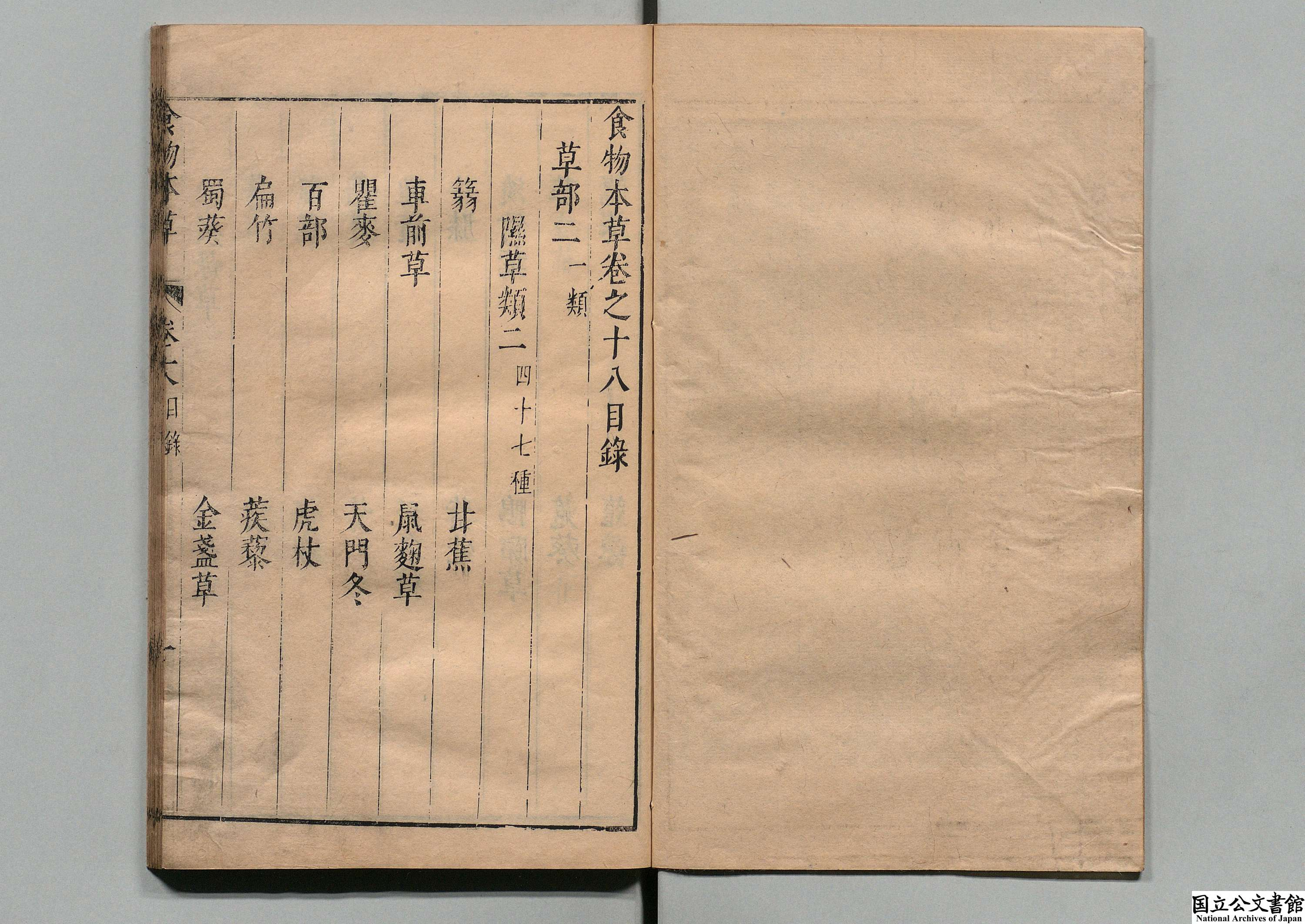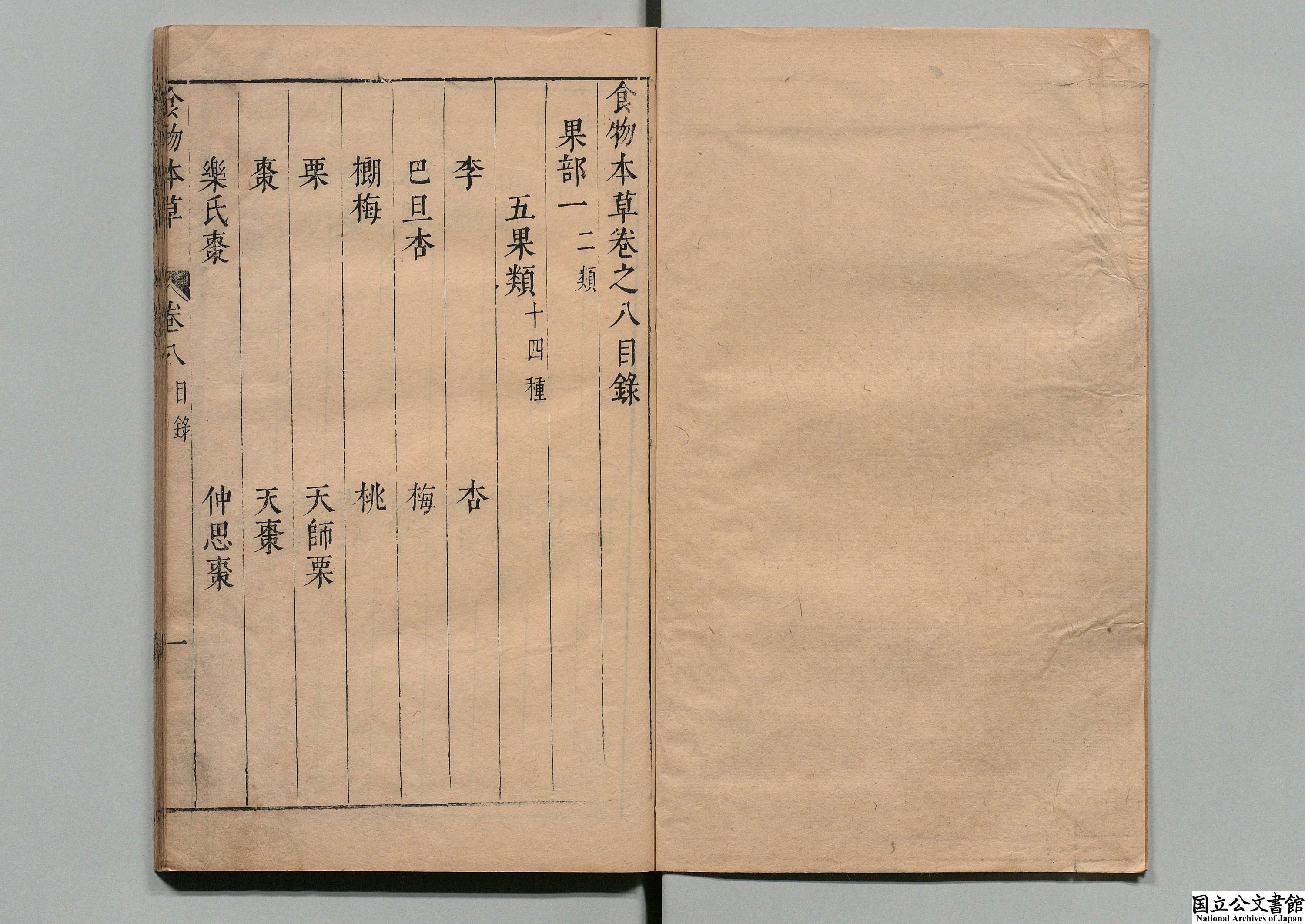 食物本草 全22卷 金·李杲撰 明·李时珍校订 明崇祯11年 (1638年) 刻本 丰后佐伯藩主毛利高标献上本 日本内阁文库数字化