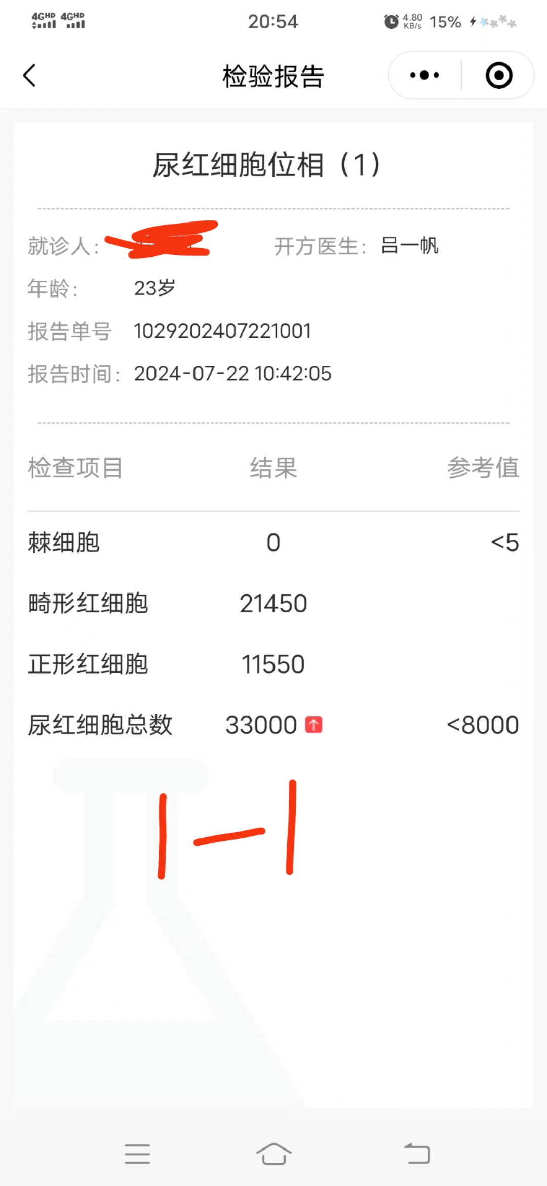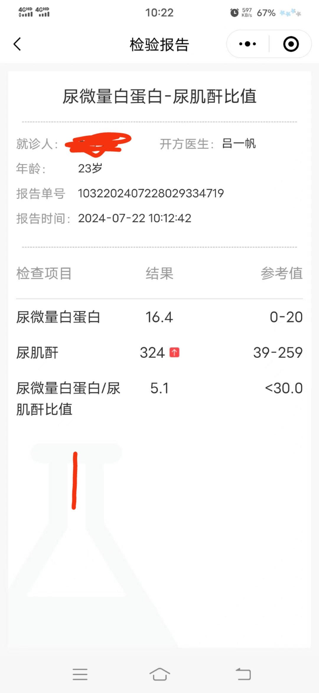 患者二十来岁在广东工作,因体检查出来尿蛋白二个
