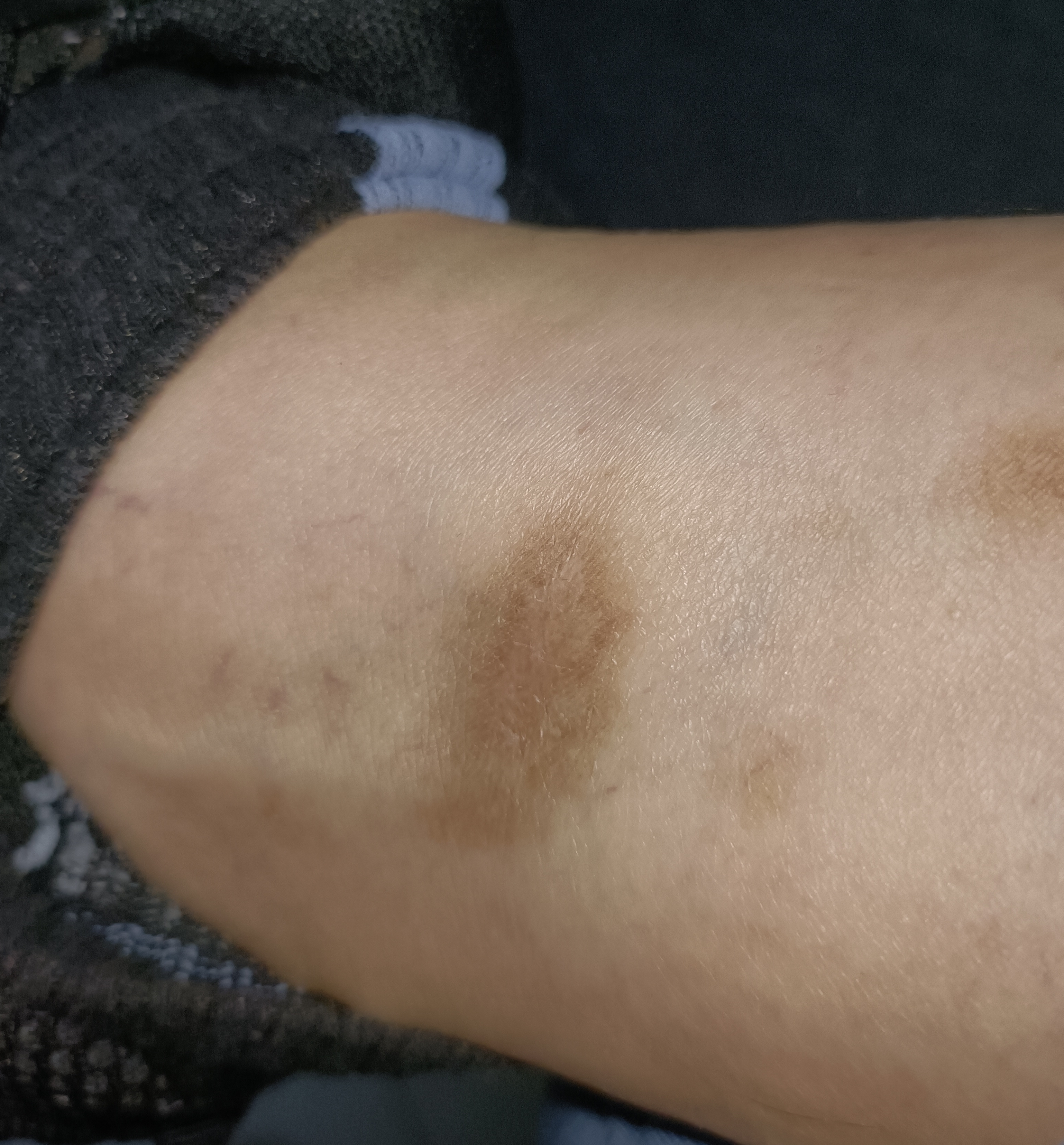有点让我觉得不可理解的是,大便是否干净还跟我的皮肤容不容易破有直接的关系,这几年来都是天天大便,现在有时候坠感没那么强烈,我就早上没有去厕所了,但是这天的白天人会比较的不舒服(坐着),同时,腿上或手上的皮肤会不自然的破,出血,(如附图),好多次了,起初以为是碰到哪里,但长期观察判断后这跟碰到哪里没关系,就是身体的原因。