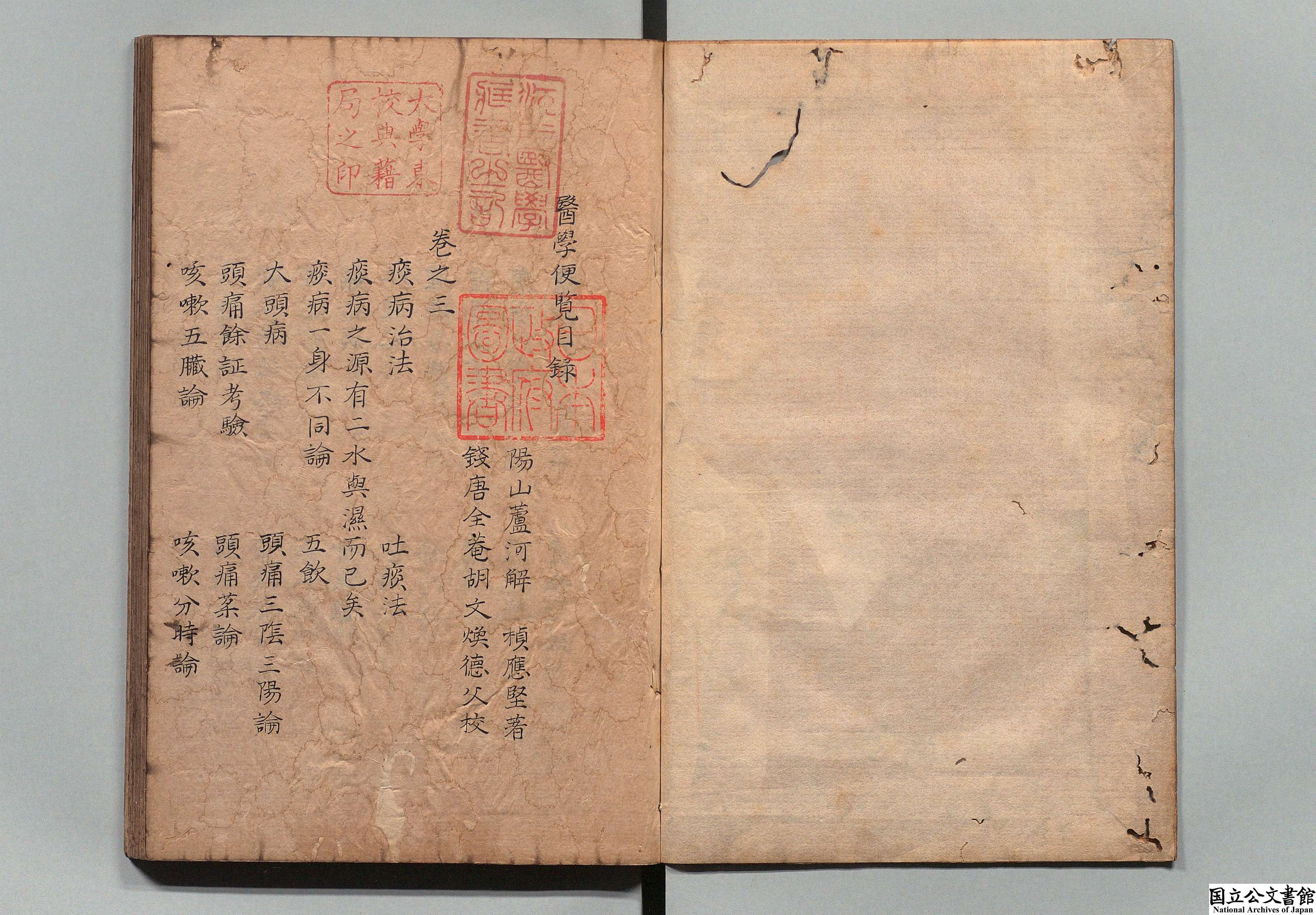 古籍数字化 医学便览 (全4卷) 明·解桢编撰 明·胡文焕校订 日本江户时期抄本 江户医学馆旧藏 日本内阁文库数字化 PDF 下载