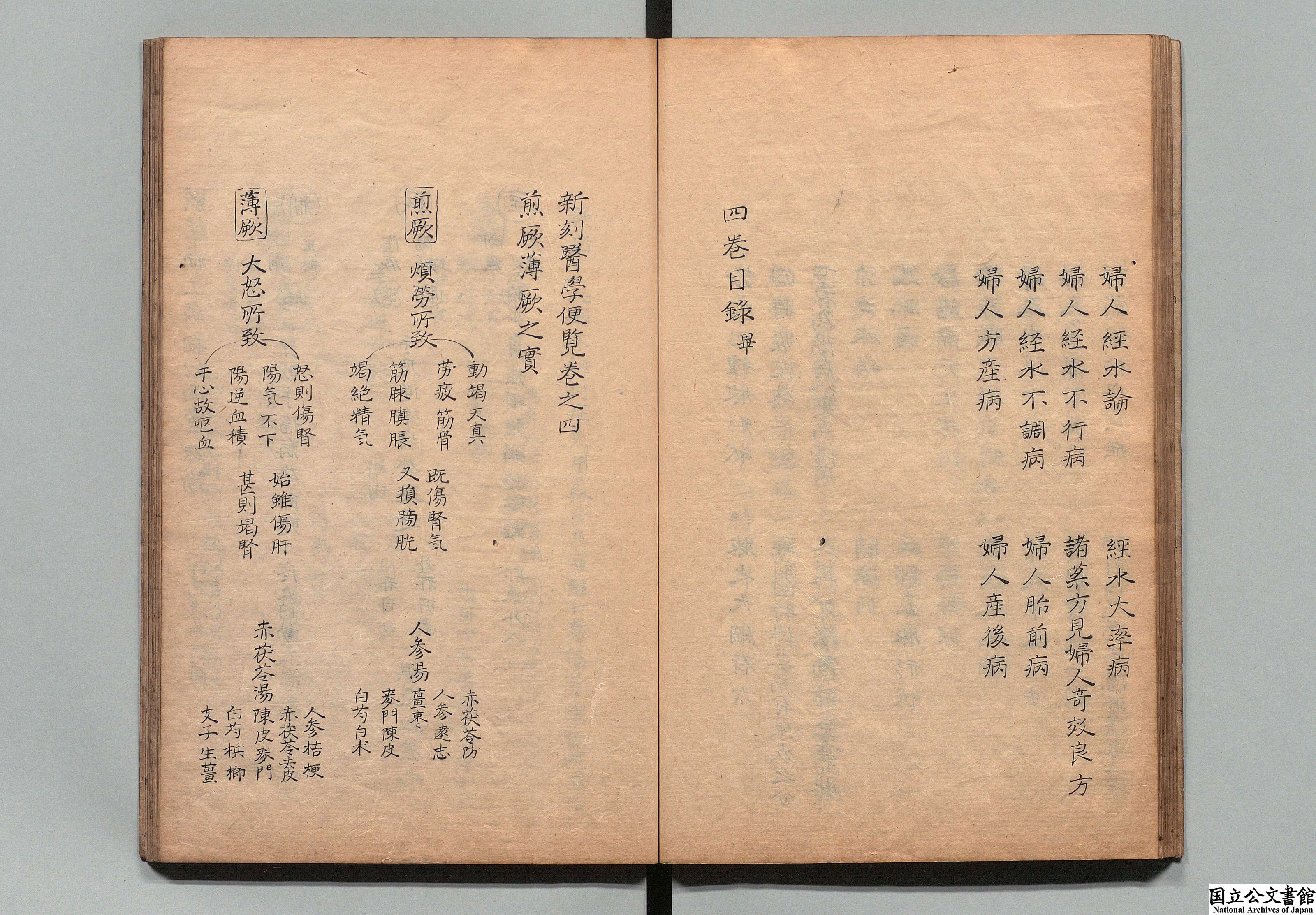 医学便览 (全4卷) 明·解桢编撰 明·胡文焕校订 日本江户时期抄本 江户医学馆旧藏 日本内阁文库数字化