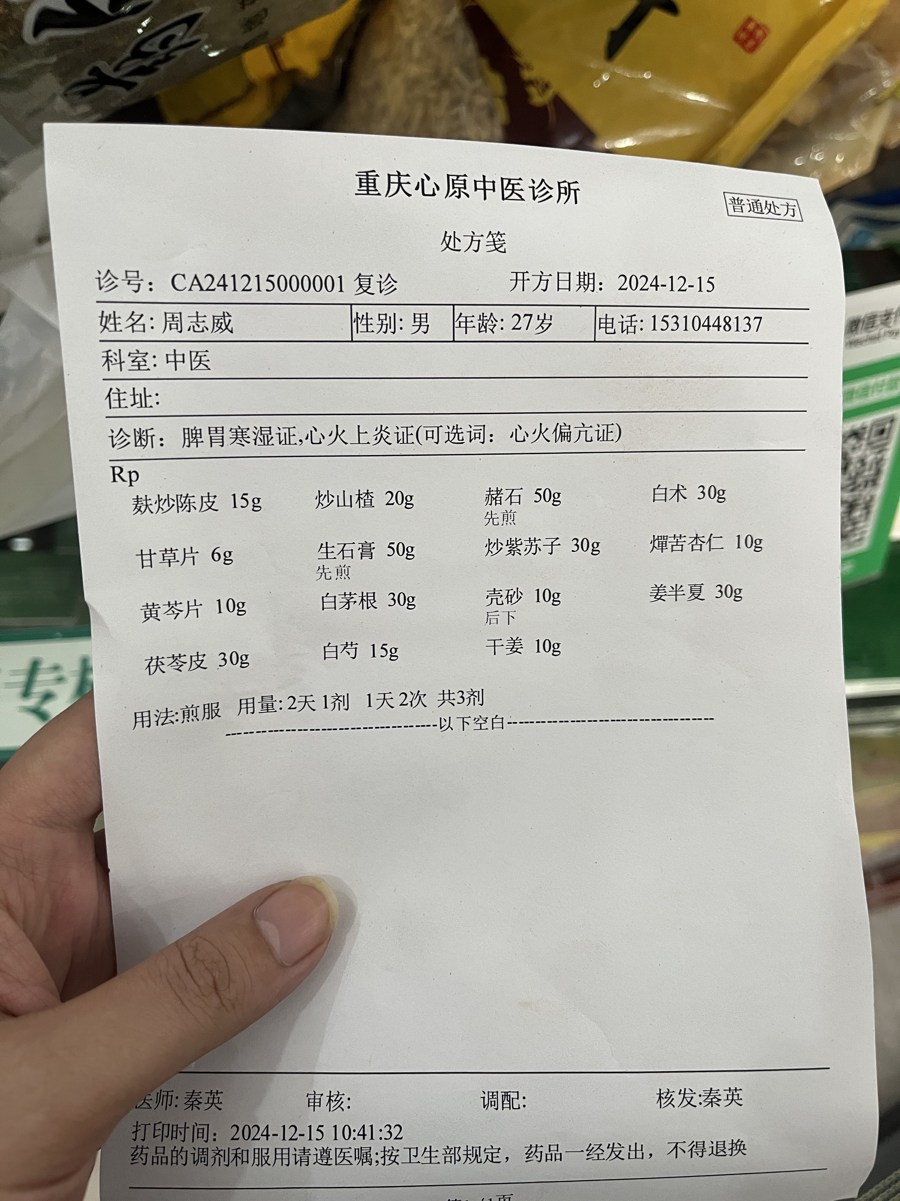 身体长期乏力,没精神 ,头脑不清晰 , 稍微一运动就感觉喘不过气 累 这种情况持续大概5,6年了 然后今年 大概5月份做了阑尾炎切除手术 三个月后肠胃功能失调了 每天便秘 要用开塞露 后面不是便秘就是拉稀  发展到现在脾胃虚的不行 症状有 每天早上起来就拉肚子 有粘液 食欲不振 闷油 恶心 干呕 吃饭感觉吞咽困难 饭后胀气( 两餐中间胃有灼烧感 吃过一段时间奥美拉和铝碳酸镁现在好了)上腹胀痛接近膻中穴,伴有失眠 焦虑 有时候下午5-6点会有头晕脑涨的感觉,口干 嘴唇起皮,乏力 跑两步心跳飞快 呼吸困难 头部经常自己感觉发热 测腋下体温是正常的  上一次中医诊断是脾胃虚弱 寒湿重 有痰湿 第一次方子开了去寒湿的药 没给我方子 吃了6天 第二吃开的 生桂枝 20g 陈皮 15g 焦六神曲 15g 炒麦芽 15g 炒山楂 20g 生甘草 6g 银柴胡 15g 清半夏 30g 旋复花 10g 生赭石 30g       生白术15g 茯苓15g 生姜60g 两副药吃了均没什么效果 目前已停药 自己买了一盒加味逍遥丸 求各位大神帮忙看看我这个是什么情况