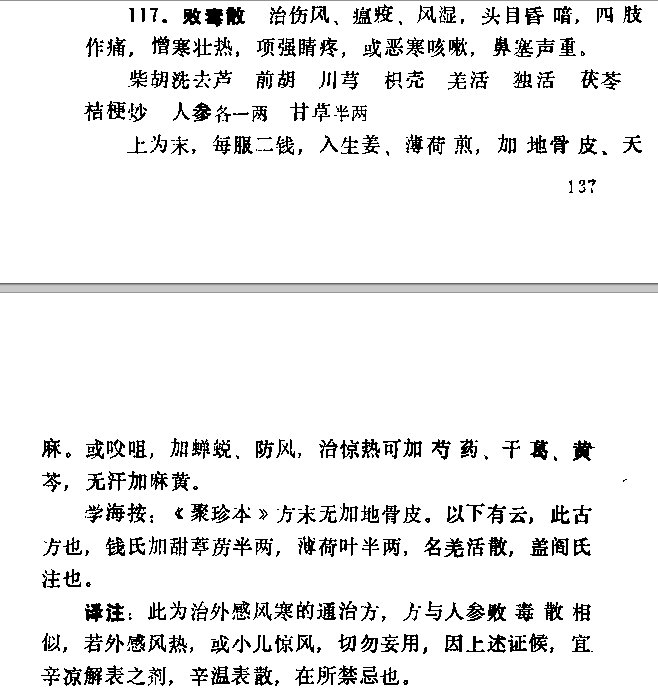 (1)小儿和老年可以用“人参败毒散”,成年人用中成药“荆防颗粒”?