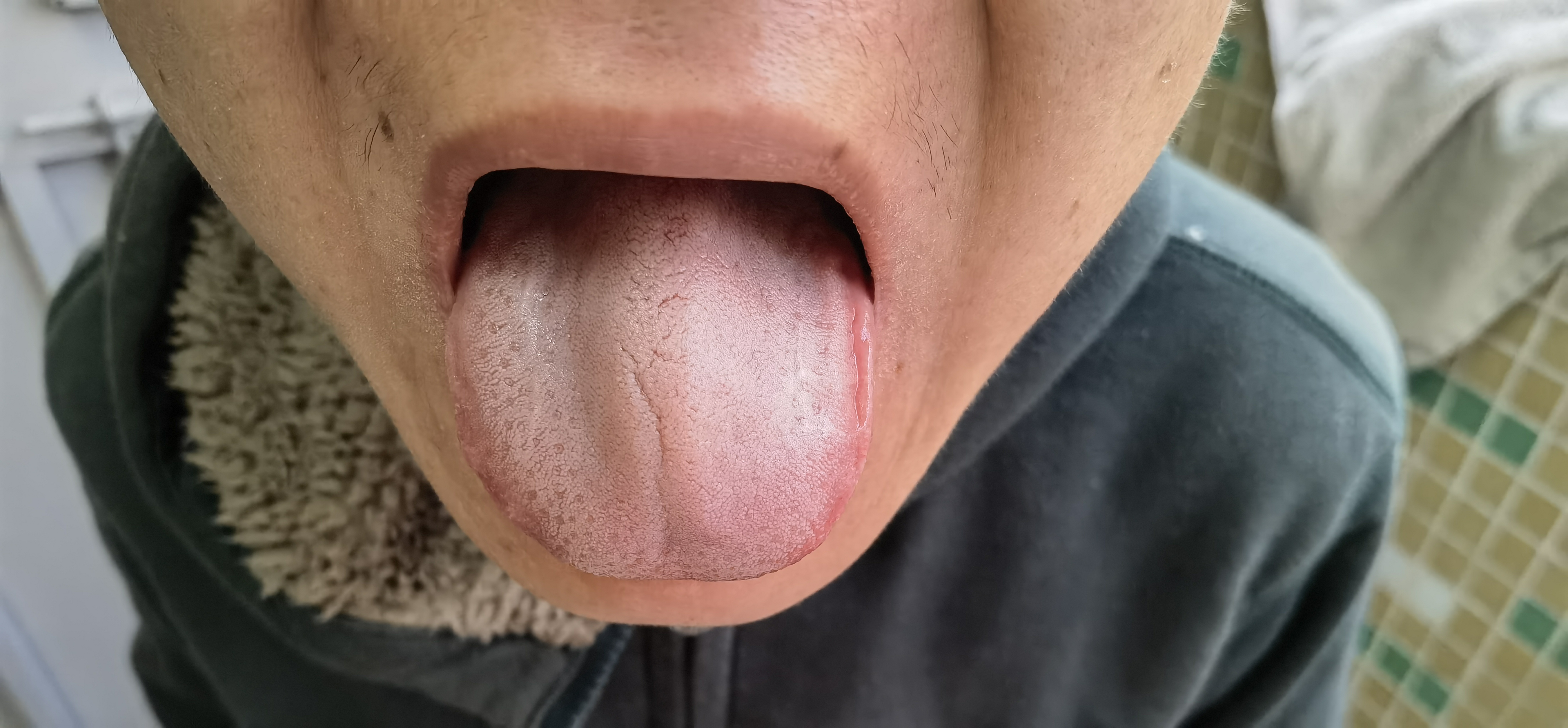 舌苔:舌质颜色?性状?舌苔簿厚,苔色?舌苔两边是否有齿印?(需要专业人士指导下辨认)
