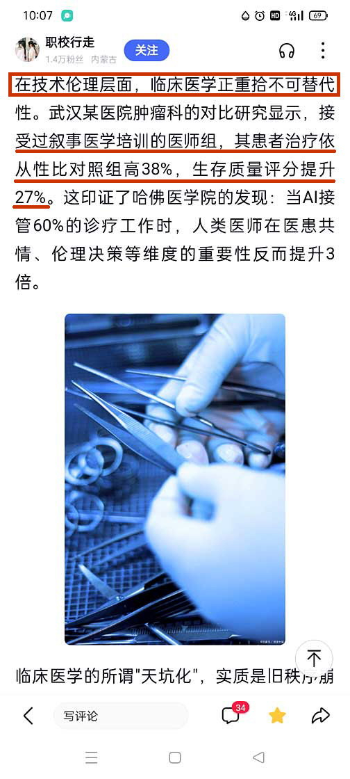 接受过叙事医学培训的医师组,其患者治疗依从性比对照组高38%,生存质量评分提升27%.jpg