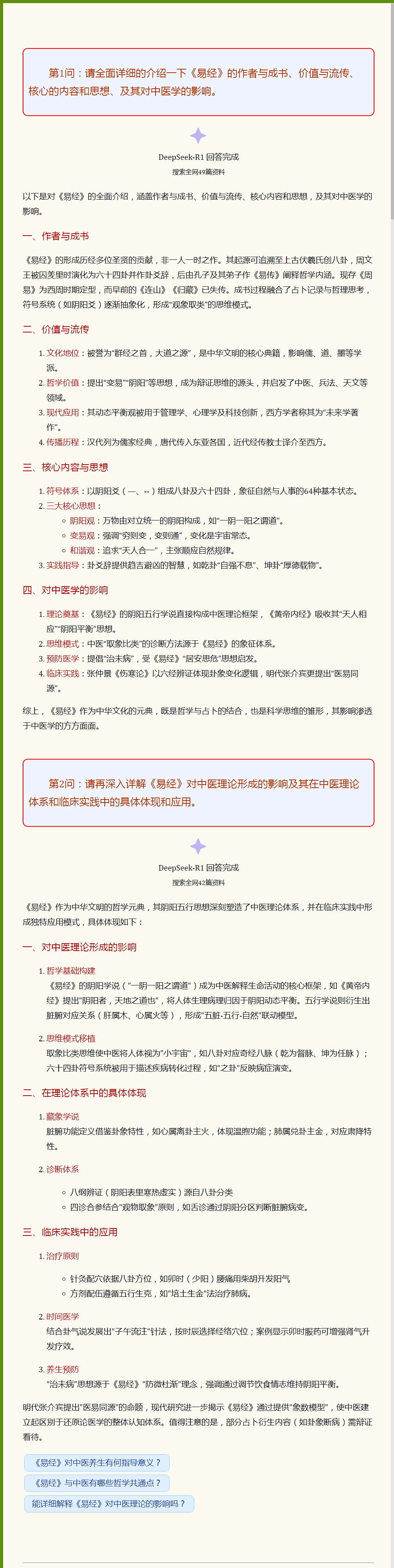 Y yu78518 声名鹊起 正式会员 注册 2023/02/26 帖子 139 获得点赞 23 声望 18 年龄 47 所在地 山东省 2025/07/07 #10 梦回杏林 说: 对于中医学习者,《易经》的哲学精神和思维方式,相当于【绪论】和【引言】及【纲要】。 具体哲学理念和思维方式的理法和应用,还是要放到《中医基础理论》和《黄帝内经》的学习中去,这样才有【实用场景】和【可操作性】。 学有余力的,可以进一步深入研习中医与《易经》的关系,参阅南怀瑾的《易经与中医》之类的书籍。 点击展开... 这论坛人太少了,你帮我留意一下有基础励志学中医的苗子,我后代没人愿学了,我贯通伤寒温病学,平常操劳太甚,估计狂不几年了。