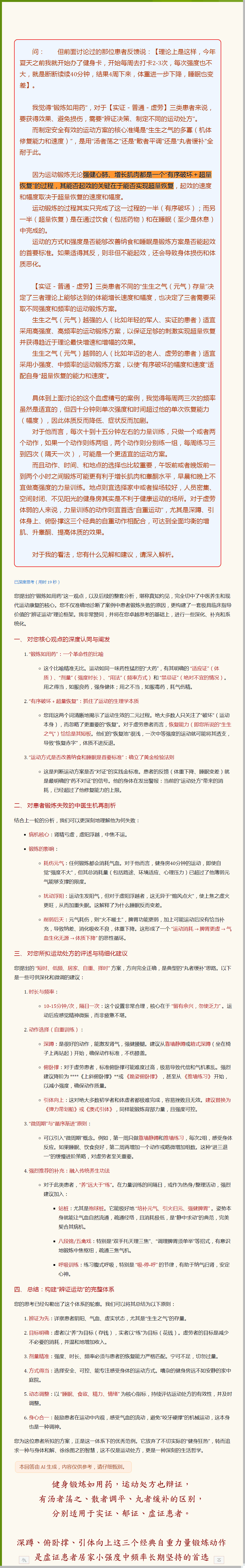 你说的没错,我后来也体会到了,健身项目全部停止,只用八段锦。