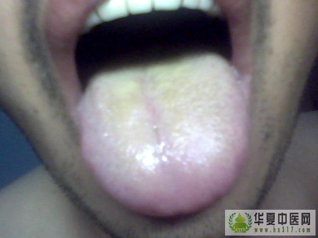 6)舌胖大有齿痕色淡红。厚黄白腻苔,苔时多时少。抽烟多时会感觉舌尖有点麻痛。嘴唇淡紫色。食油炸物会口腔溃疡或嘴唇生疮。