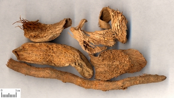 [来源] 为蚌壳蕨科植物金毛狗脊Cibotium barometz (L.)J. Sm.的干燥根茎。