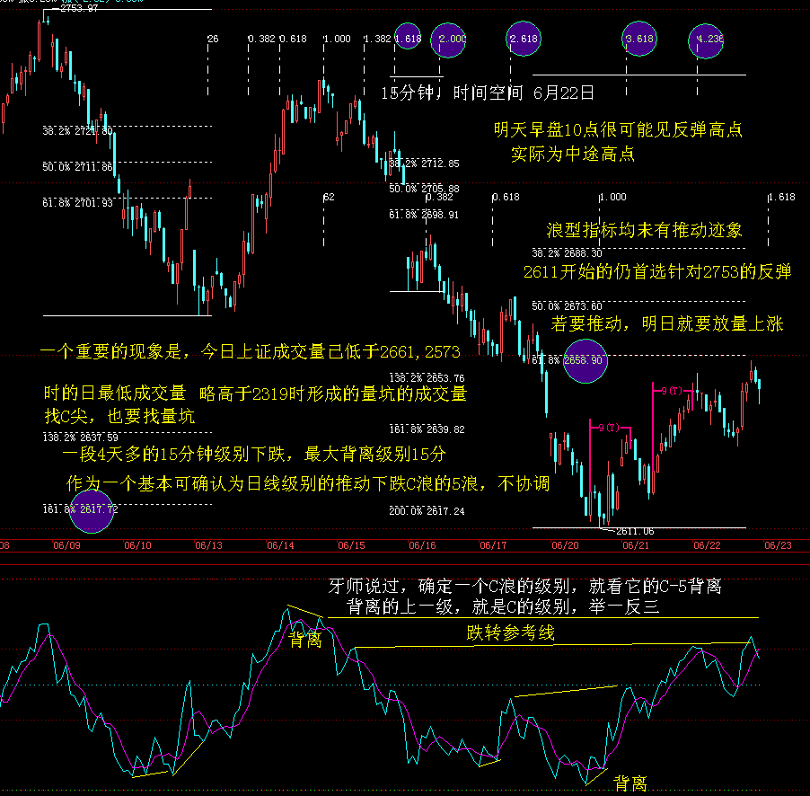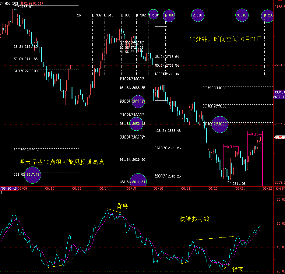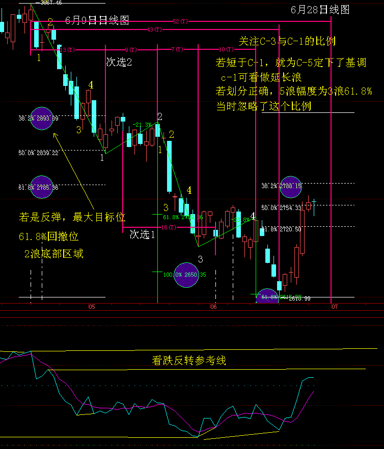 只是设定出指标的潜在看跌反转位,要看市场实际在这些位置怎么表现,点位的反弹目标位也是一样,要观察到这些位置时,小级别浪型的发展结构,和小级别上指标的表现,小级别上设定的一些目标位的比例完成情况,来综合判定。预设的只是框架,重要的是看市场实际怎么走