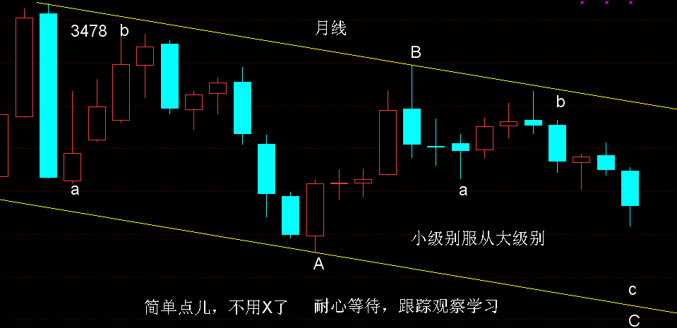 谢谢朋友们的关注和鼓励,愧对了!这阵子做了点新的事情,时间比较少,也一直静不下来。坐下来看各周期图表,只觉得大小周期充满了矛盾,竟始终不能有一个明确的观点,只是在某级别上有些看法,却不能互相支持。我明白确认和纠错的重要性,告诉过自己不做死多和死空,可对市场没有明确的看法,这件事儿本身让我自己也很沮丧恼火。所以一直没有发帖。再一次体会到潜心于市场的重要性,心中装着大周期,从最小周期连续跟踪市场,才能保持对市场的感觉,才能从最小级别上及时抓住大级别转折变化的蛛丝马迹。象初学者一样,保持新鲜感,兴趣和对市场的敬畏,坚持对学过的方法和一些思路,对照市场实际走势,反复观察应用,才不会懈怠,才会进步
